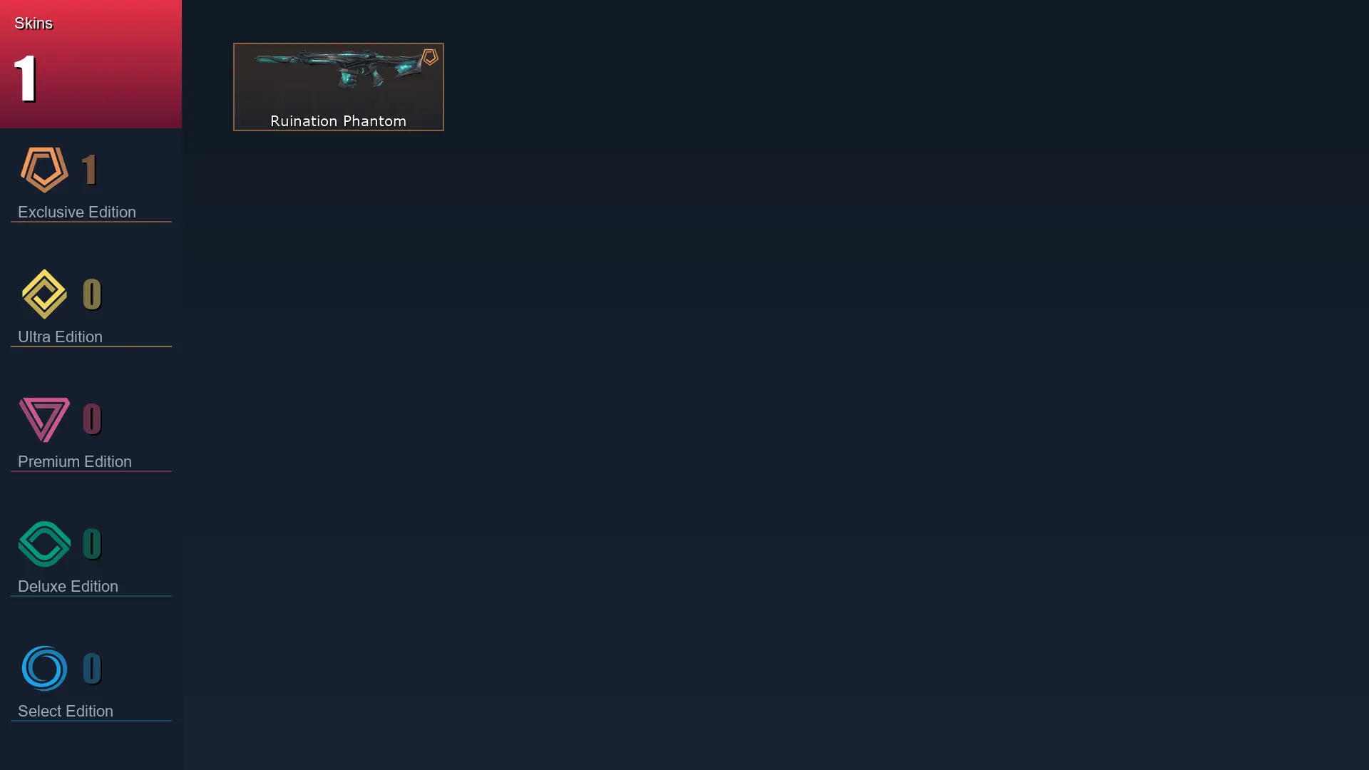 🎏 AP 🖨 Level 23 🗑 1 Skins 🚙 9 Agents 👇 Ruination Phantom 🏞 Ruination Phantom 😡 Ruination Phantom