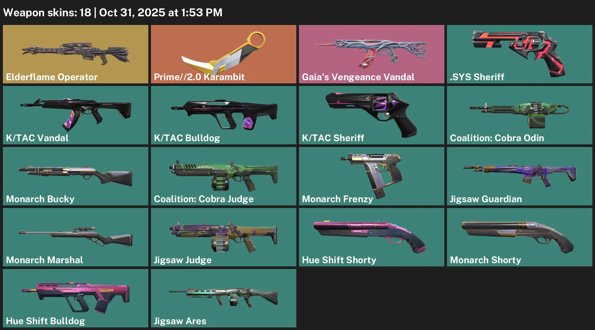 EU | 18 Skins | exp GOLD 1 | Prime//2.0 Karambit | Gaia's Vengeance Vandal | Elderflame Operator | K/TAC Vandal | #DVR9380 | #MBFN