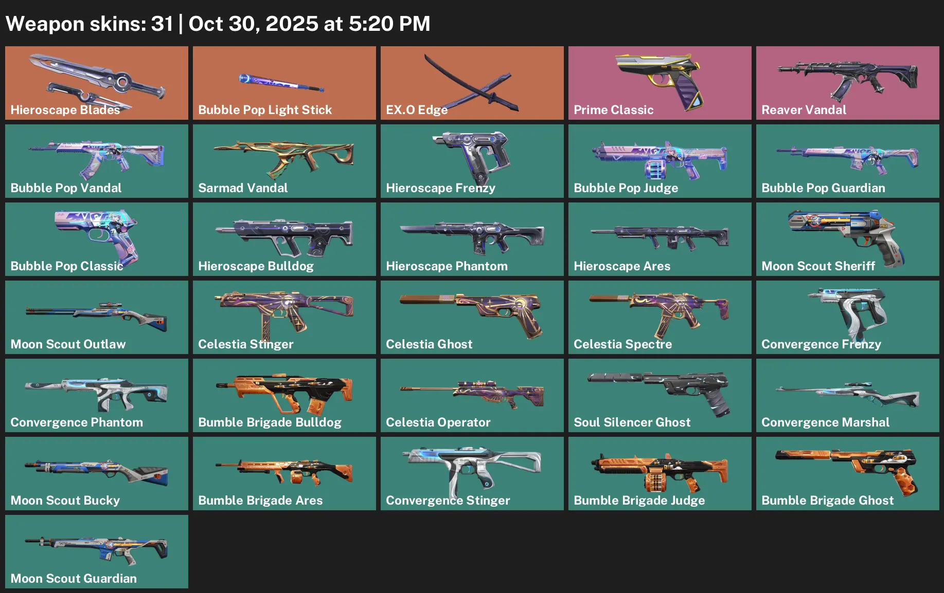 EU | 31 Skins | exp BRONZE 2 | Reaver Vandal | Prime Classic | Hieroscape Blades | Bubble Pop Light Stick | EX.O Edge | #NVM0212 | #MBFN
