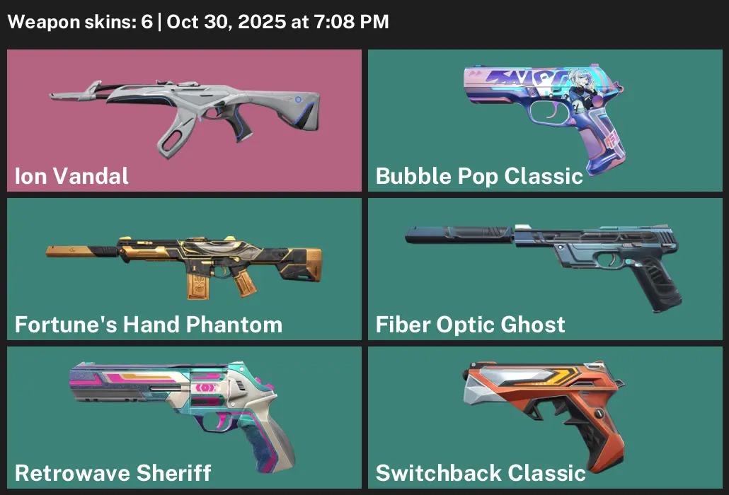 EU | 6 Skins | BRONZE 2 | Ion Vandal | Fiber Optic Ghost | Bubble Pop Classic | Fortune's Hand Phantom | #ASV5516 | #MBFN