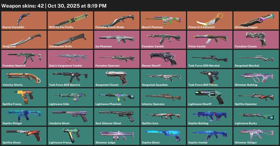 💠【EU/TRY】• 53 Skins • Xenohunter Knife • Araxys Vandal • ChronoVoid Phantom • Elderflame Operator • Neo Frontier Sheriff • Ruination Ghost • Diamond 3 • Full Acess