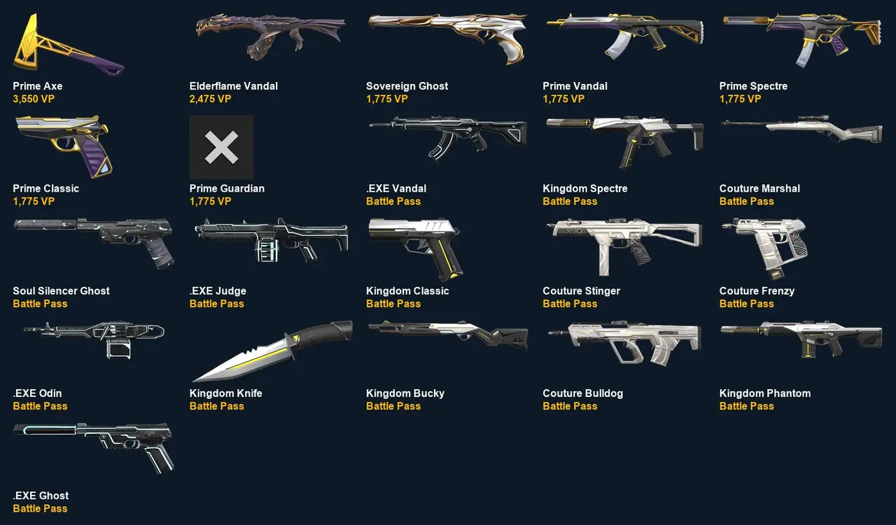 VA2588 EU Prime Axe | Elderflame Vandal | Sovereign Ghost | Prime Vandal | Prime Spectre | Prime Classic