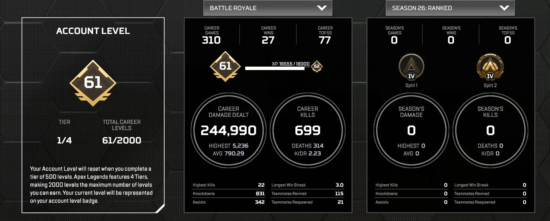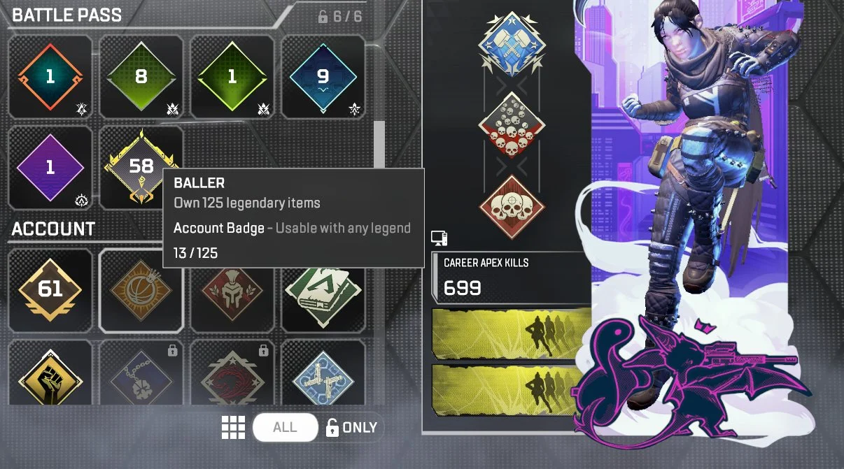 PC | Level 61 | Season 26 Split 2: Gold 4 | 13 Legendary Items | 3K, 4K & 20K Badges | Diamond S12 | Gold | Relic: No