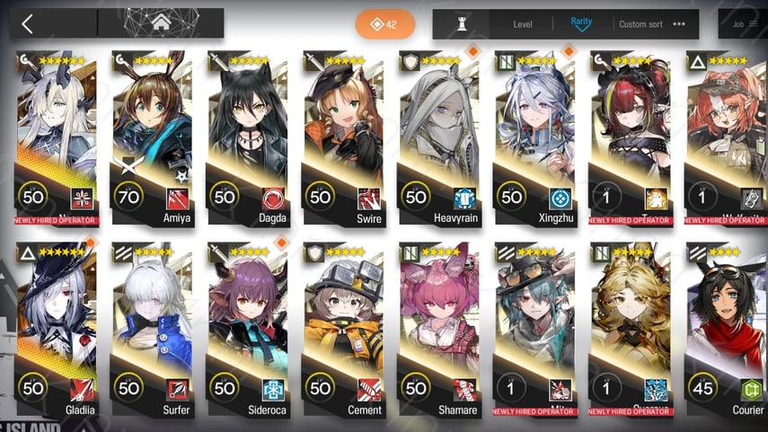 กลไกกาชาควบคุมการเข้าถึง Operators ที่ทรงพลัง การได้ตัวละครเฉพาะเจาะจงต้องอาศัยโชคในการดึงจากแบนเนอร์สุ่ม ซึ่งมักต้องทำหลายครั้งและใช้สกุลเงินพรีเมียมที่สะสมไว้ การสร้างรายชื่อทีมที่แข็งแกร่งต้องใช้เวลาหลายเดือนในการล็อกอินทุกวัน เข้าร่วมกิจกรรม และบริหารทรัพยากรอย่างรอบคอบ การอัปเกรด Operators ไปยังระดับ Elite 2 ใช้วัสดุที่หาตกได้ยากหรือจำเป็นต้องฟาร์มเป็นเวลานาน