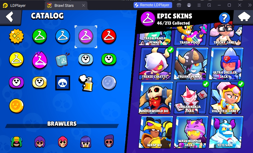 184 SKINS 💯 TRIXIE COLETTE ❤️ 39.950 CUPS 🏆 90 BRAWLERS 🐼 10 HYPERCHARGED 🩸 12 MAX BRAWLERS 💛 BLACK GODZILLA BUZZ ❤️ FURIOUS FANG ❤️ MAJOR ROSA ❤️ TRICKY JANET ❤️ VALKYRIE JANET 💯