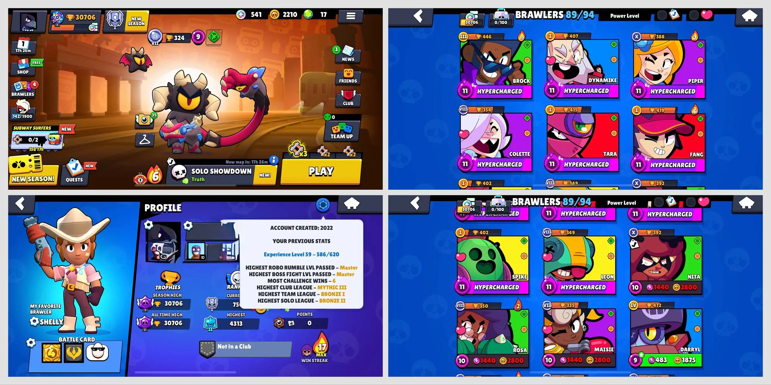 ✨🔥 2022 ACCOUNT | 30,706 TROPHIES 🏆 | 138 SKINS 🔥 | 89 BRAWLERS 🎯 | 8 HYPERCHARGE 💥 | MYTHIC SKINS 🎭 | LVL 59 ⭐️ | INSTANT DELIVERY 🚀✨