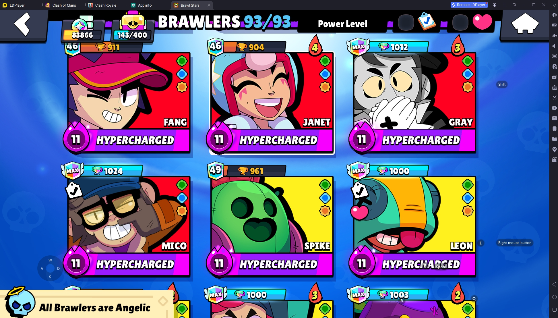 251 SKINS 💯 83.866 TROPHIES 🏆 93 BRAWLERS 🐼 30 HYPERCHARGED 🩸 30 MAX BRAWLERS 💛 BLESSED BUSTER 🧡 CAPTAIN CARL 🧡 MARTYG MEG 🧡 LUNAR PIPER 💯
