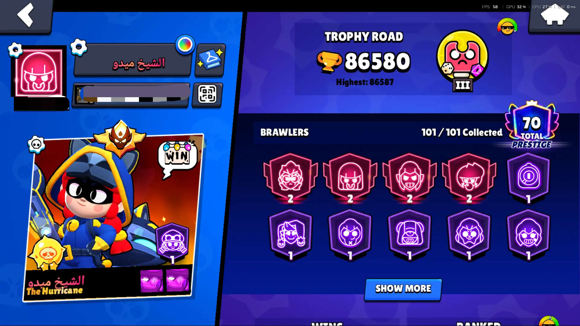 Bs 86k . OLD . NEW Masters 🔥 PLAYER ID CHANGEABLE 🔥 65 max ✅ 410 skins ✅ 93 hypercharges . 27 buffies