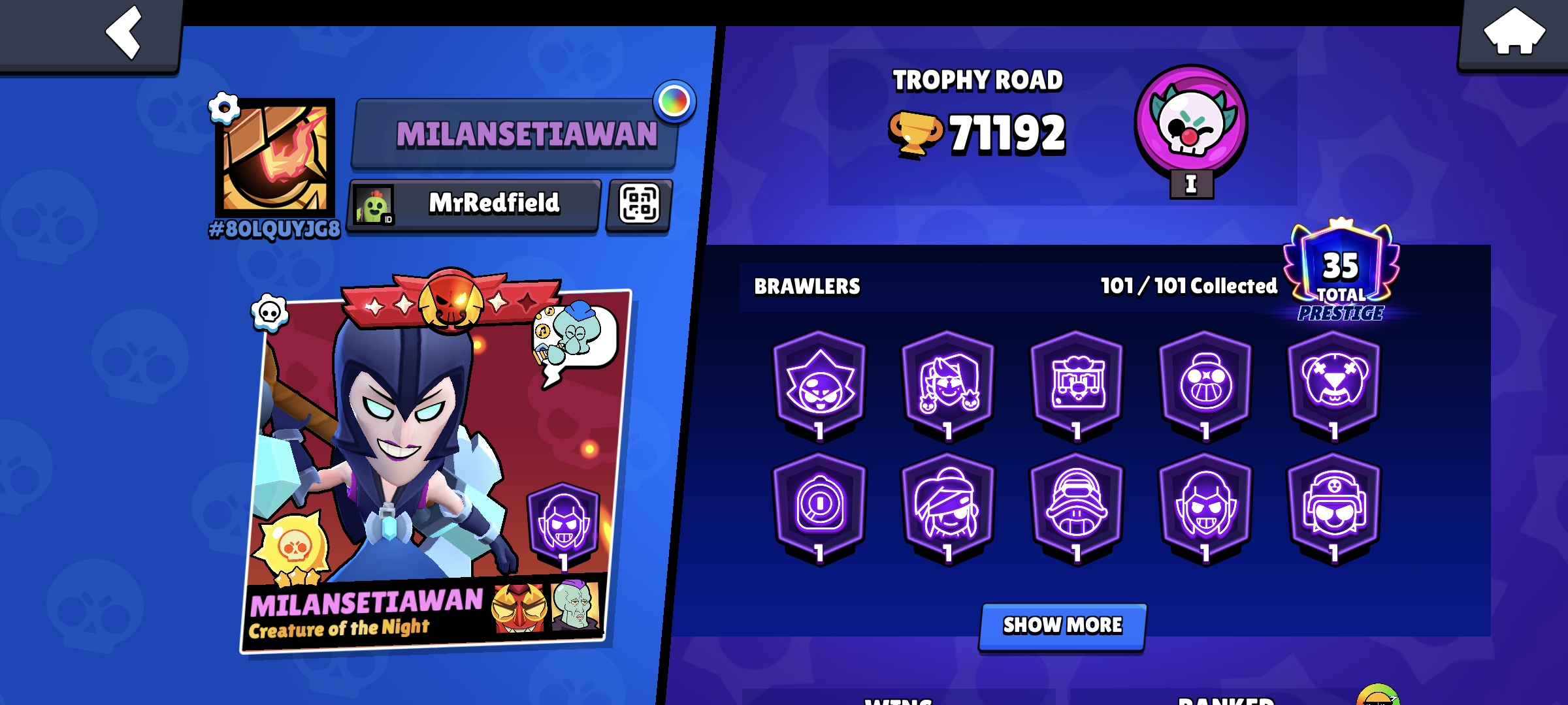 BS Account Good 🥶 Trophy 71192 🥶 Max brawlers 73 🥶 HC 61 🥶 Brawlers Full 101/101 🥶 Skins 350+ 🥶 Guaranteed Account 🥶