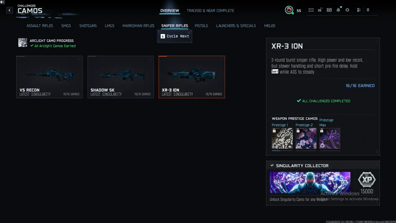 🎮【🎖️ Prestige 2 Ready to 3 ⸱ Level 55 】【 35 SINGULARITY Camos (All Snipers SINGULARITY )】【New Warzone & Bo7】 |⚡ Instant Delivery✔ Name Changeable ✔Linkable to all platforms | 🏆 Full Access| 🥇 Hand Leveled | Warzone