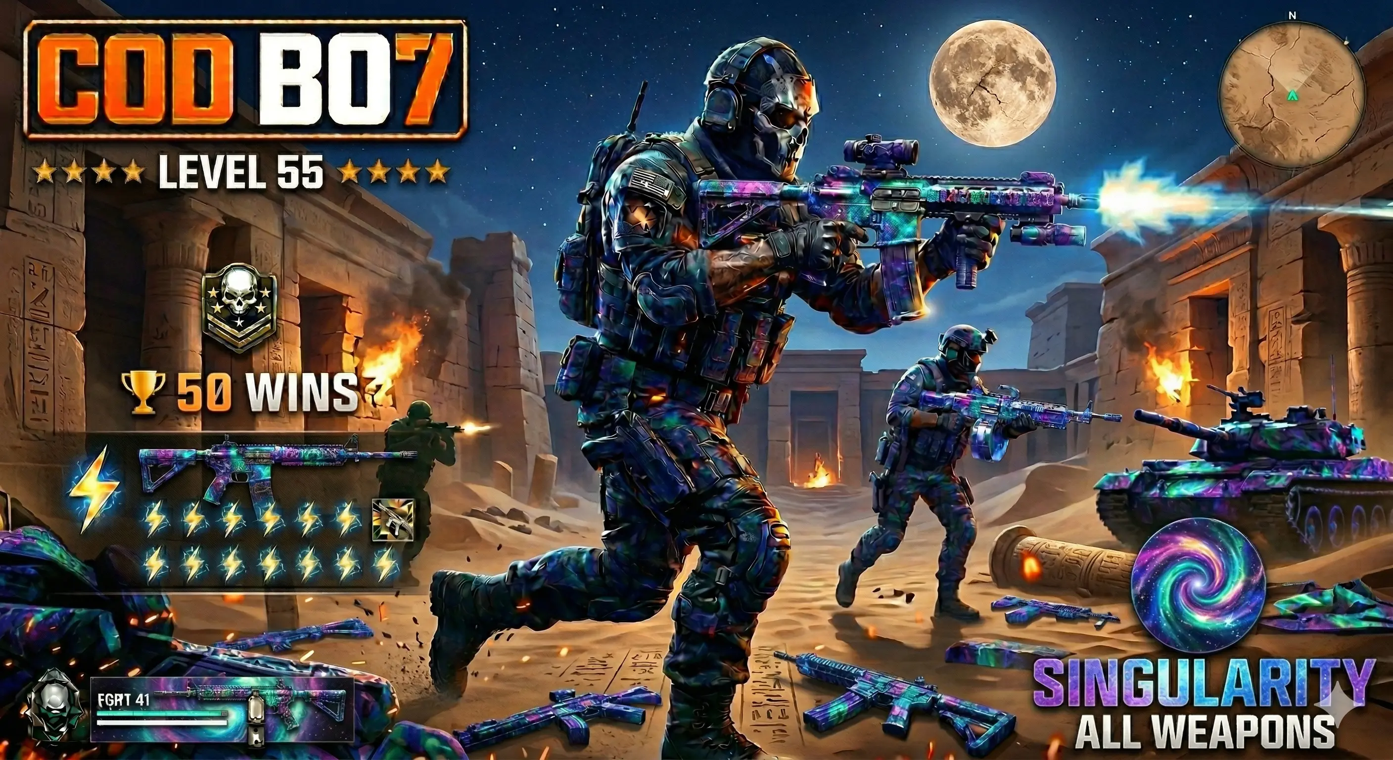 PSN 🎮 BO7 | ⭐ Level 55 | 🏆 50 Wins | 🌌 Singularity All Weapons