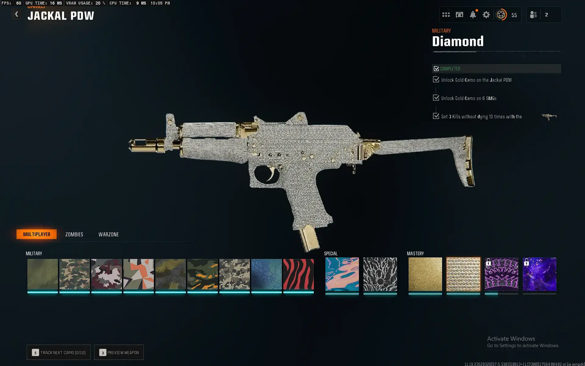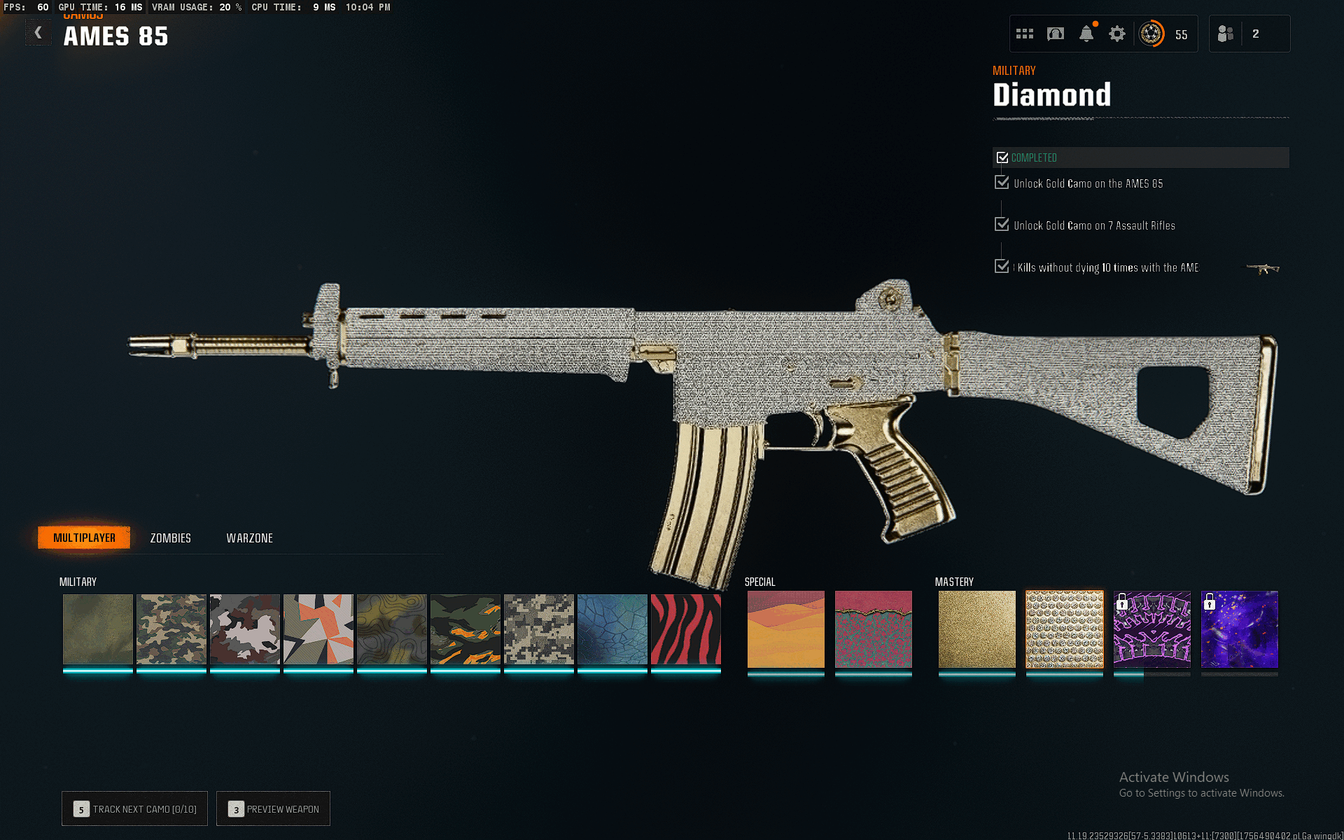 🎮 Warzone / BO6 Account | 💎 13 Diamond Camos + Level 55-50 Wins 🎉 | 🎨 190+ Unlocked | ⚡ Instant Delivery