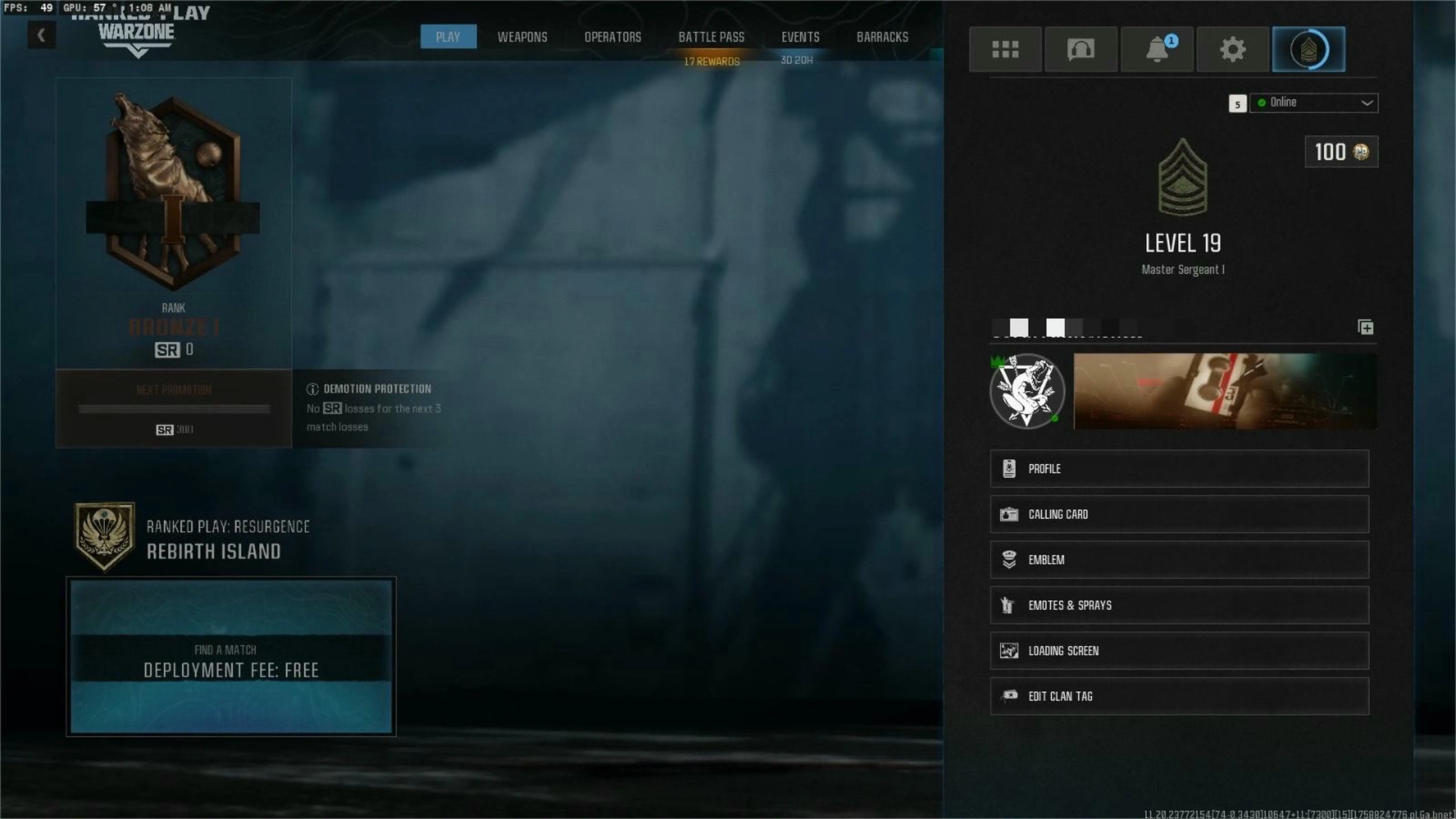 💢 Warzone 💢 Ranked Ready 💢 Top 30 Placement 💢 Full Access 🧛 Level 15 🧛 No Gold Camo | 💻 Battle net , Steam / 🎮 Xbox / 🎯 PSN #XGRoMa