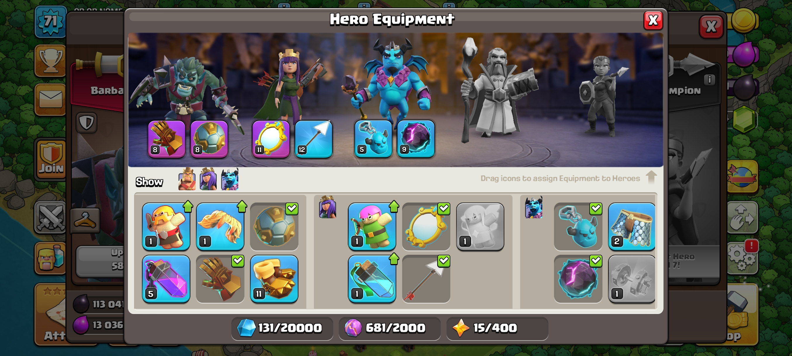 1350 Gems-Giant Gauntlet-Spikey Ball-Magic Mirror Max-Th10 Full Max-Xp71-Hero 40-40-20-Nc 500-Full Access