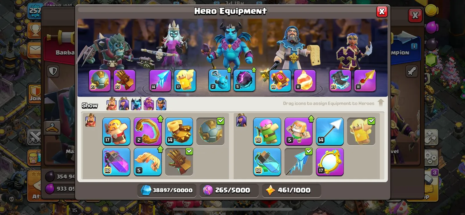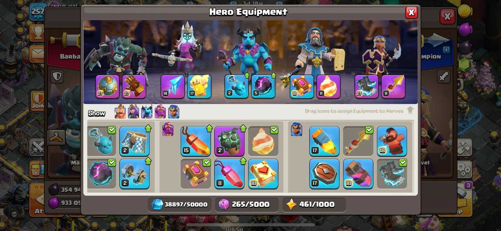🤤 431 GLOBAL RANKED 🏆+ 20.7k GEMS 💎 MAX TH 17 + BH 10 😴 25.9k+ LEGEND TROPHIES 🏆 FULLY DECORATED WITH RARE OBSTACLES 😉 3.3k+ WAR STARS 🌟 3 EPIC EQUIPMENTS MAXED 😮💨 2 SCENERY 🥳 2k RAID MEDALS 🎖️ 10 HEROES SKINS 🤩 FULL OF MAGIC ITEMS 🥹 V269 ✨