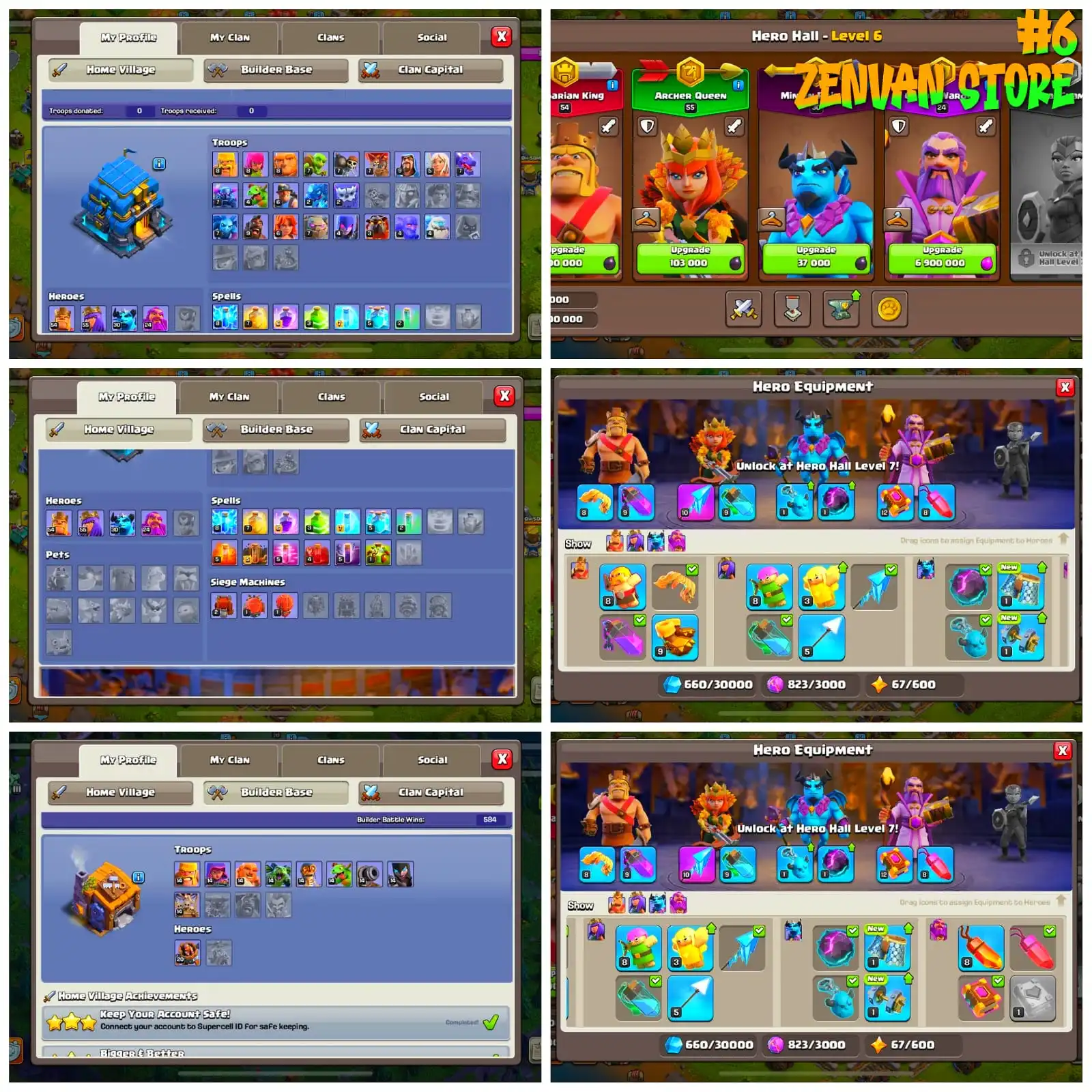 #6 🏰 TH12 Account | 🔱 BK54 👑 AQ55 🧙 GW24 👾 Minion Prince 30 | 🧰 Hero Hall 6 (Equip up to L12) | 🏆 2,191 / Best 3,390 | 💎 165 | 🧱 BB 2,726 | 🚚 Fast Delivery ✅ Safe