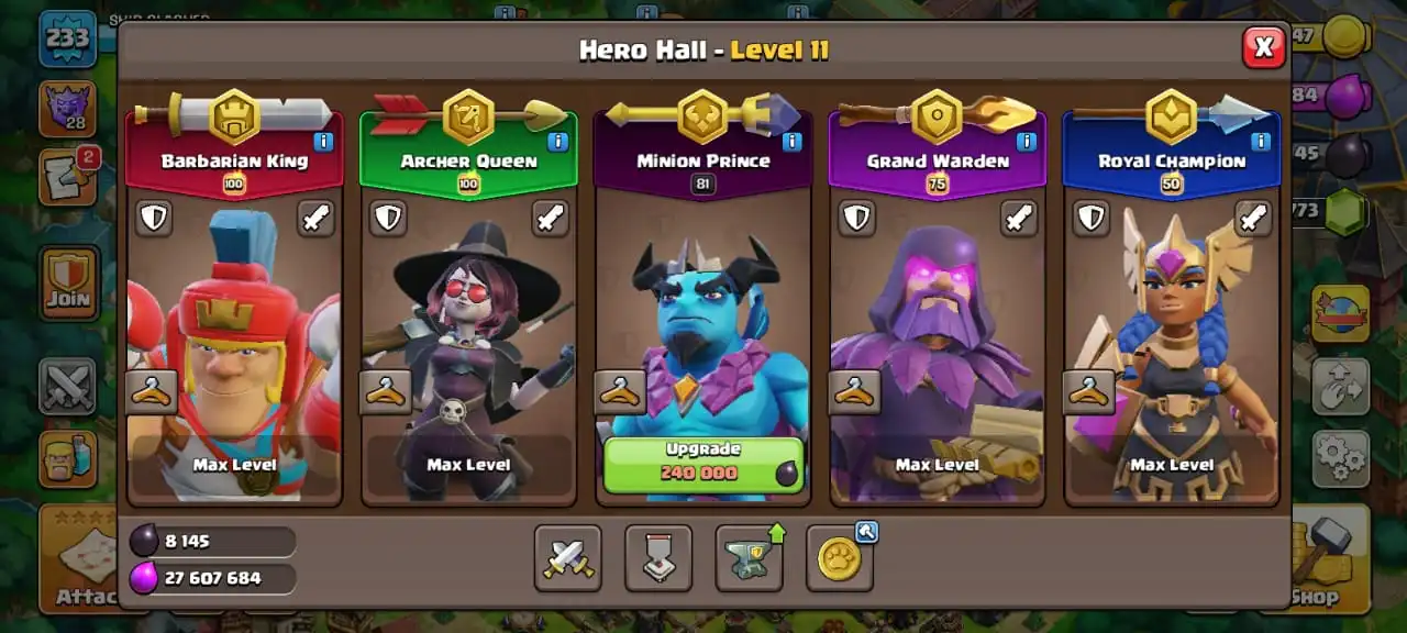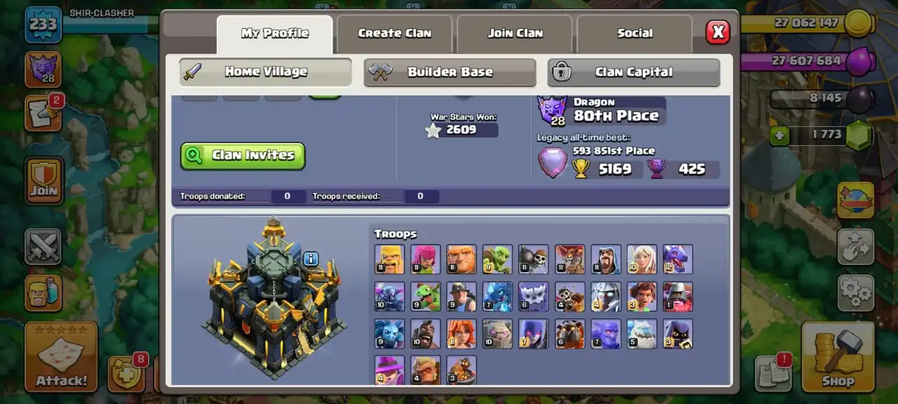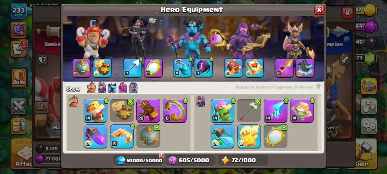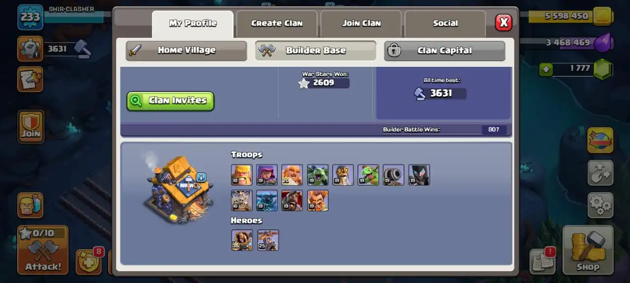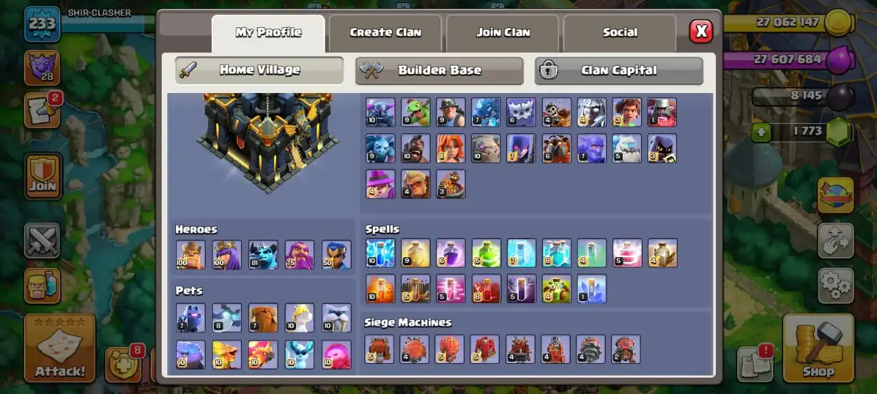 TH 17 almost maxðĨmax heroesâ ïļfull equipment 32/33âïļ6 builderâsâïļ1243 cwl medalâ