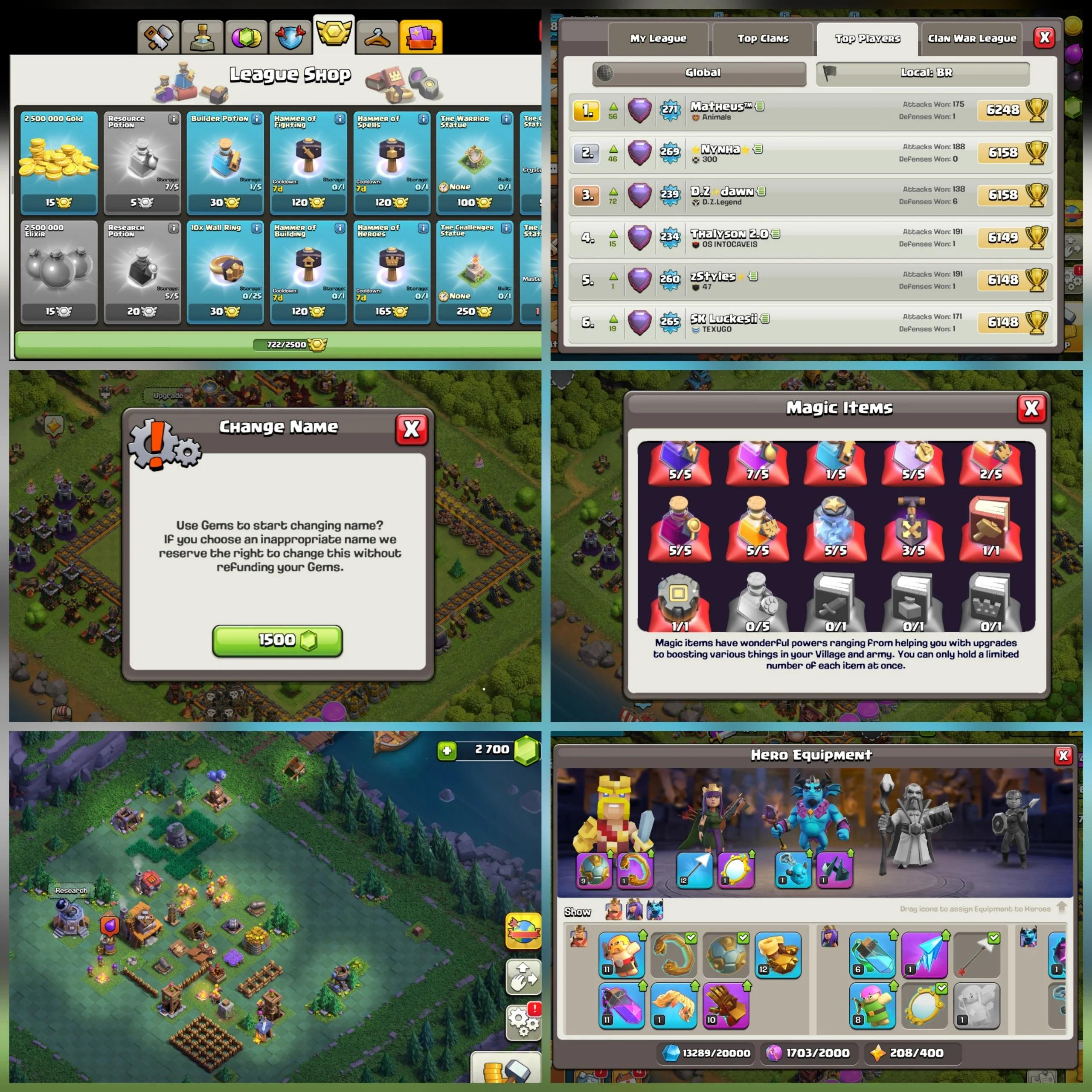 ✨[🇧🇷 BRAZIL LOCAL ~ MAX TH10]✨⚔️6x EPIC-EQUIP’S | ⭐️98 XP | 🎁MAGIC ITEMS | 💎2,730 GEMS🦸♂️HERO’S: ⚔️40 | 🛡️40 | 🔥20