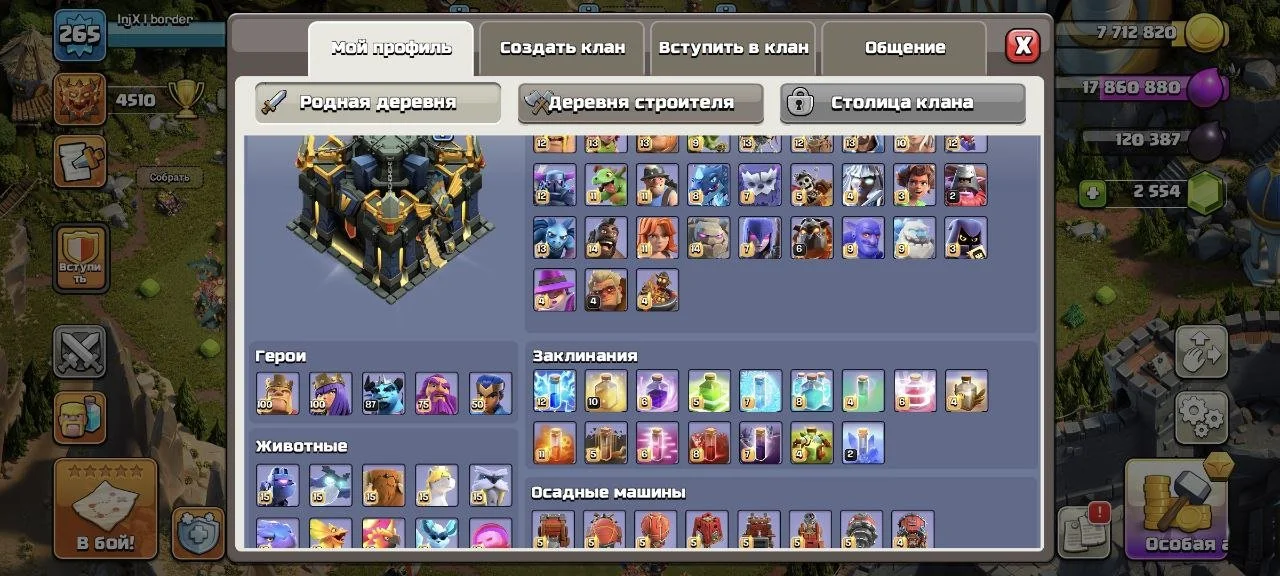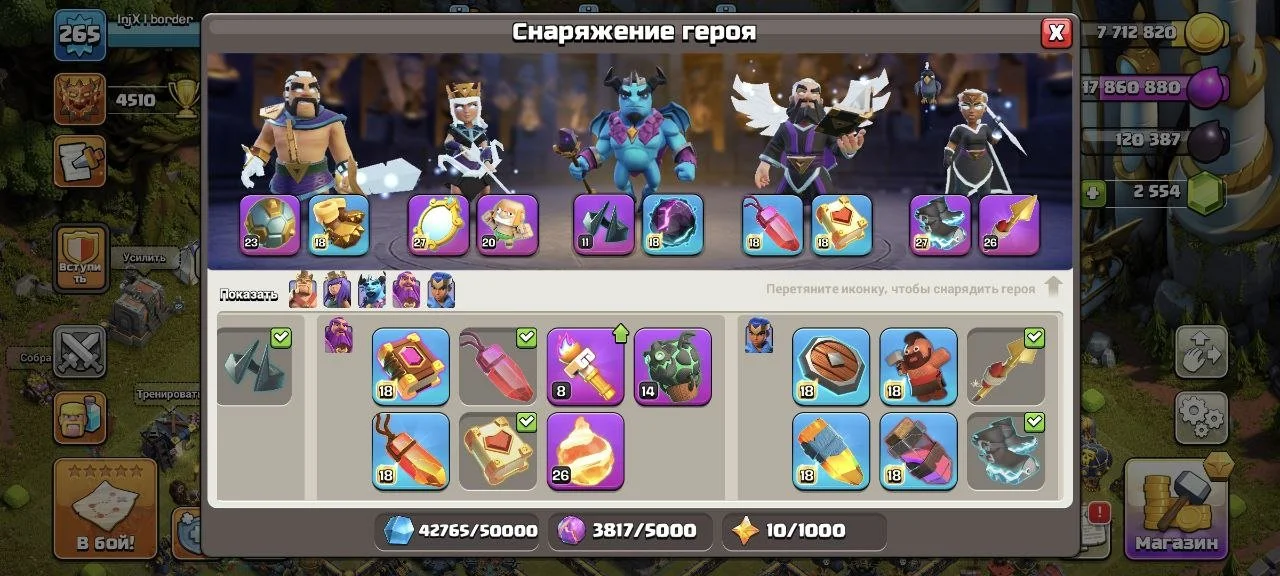 COC136 // 17TH Full 98% 265 LVL 12 Epic Gear Form + 22G Skins