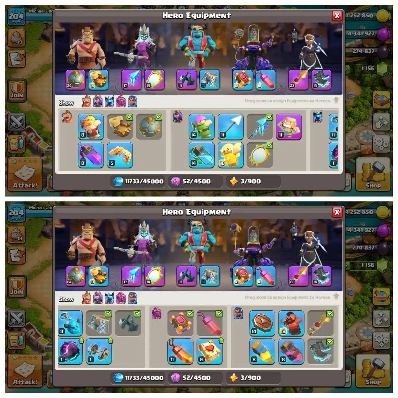 EXP 204 ⸱ TH 15 ACCOUNT || [ 7 EPIC EQUIPMENTS ] || HIGH DEFENCE & TROOPS|| SUMMER SCENERY & SKINS || LOADED MAGIC ITEMS || NC 500 GEMS || IOS & ANDROID || INSTANT DELIVERY
