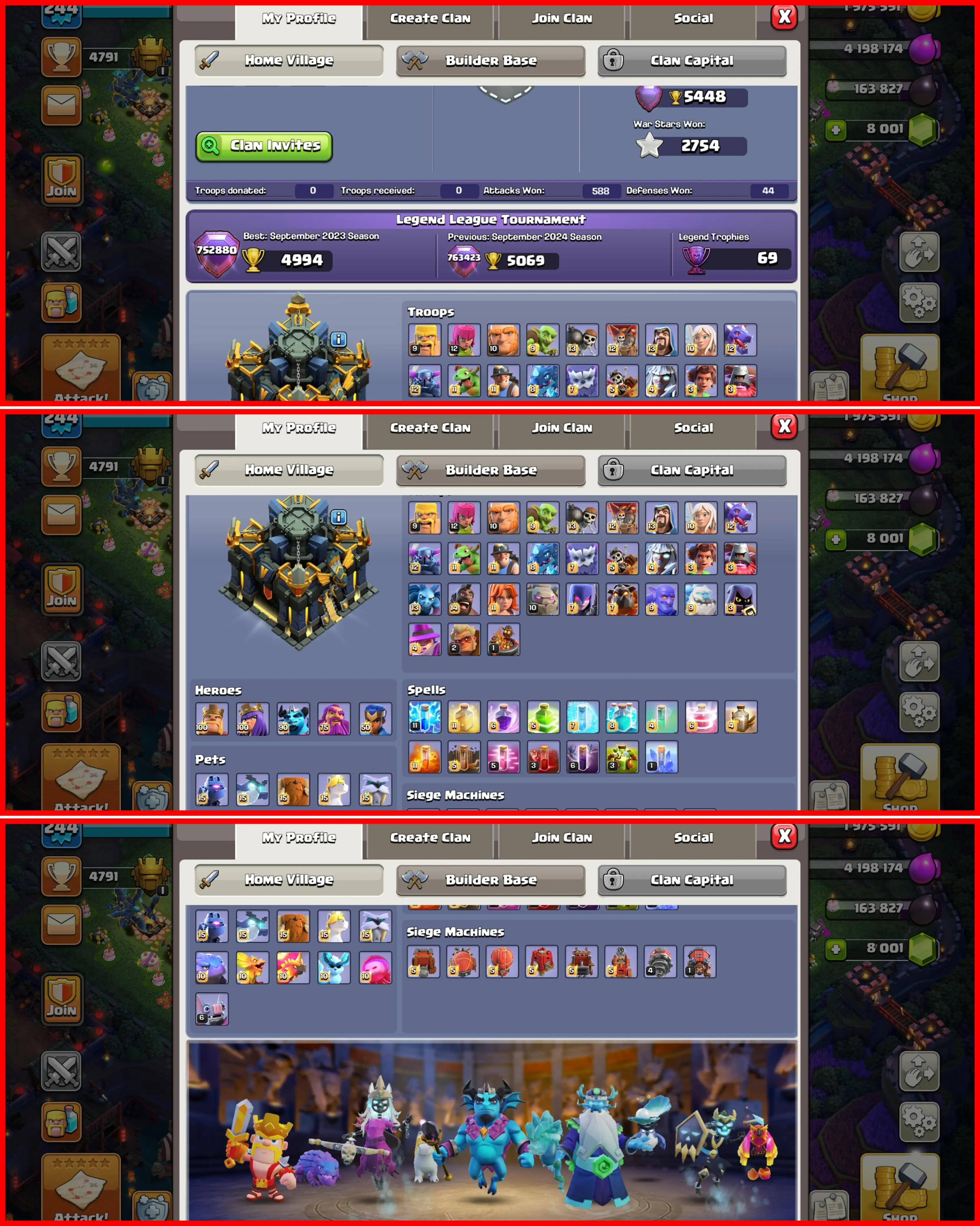Full Max Th 17 | All Heros Max | Full Fire Profile | 500 NC | Builder apprentice -Lab assistant -Alechemist Full Max | 8000 Gems | 900 Medels | Items Full | 20 Skins | Almost 9 Epic Max | BB full Max | 60 Lvl Hd id free | Ready for Th 18