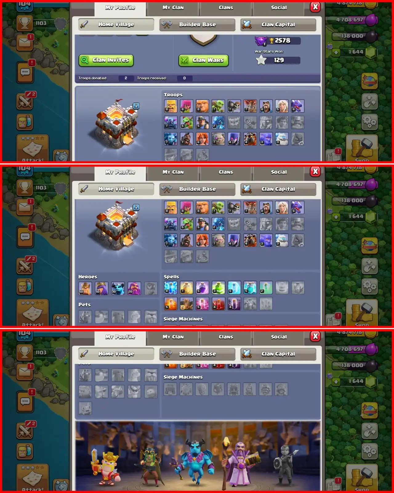 Rare Th 11 | Fully Max | Nothing Left | 8 Epic Eq | 5 Epic Max Almost | 50-50-30-20 All Heros Max |Free Nc | 333 Medels | Items full | Best for War |
