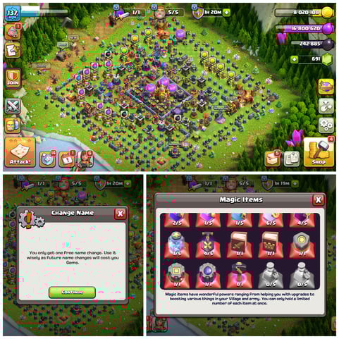 🌳 Rare Tons Of ClashTrees & Cakes 💎 TH 17 Near Max 🧩 9 Epic Equipments 💪 Crazy Heroes ⚗️ Awesome Laboratory 🎭 8 Skins ✨ Name Changeable ⚡ Instant Delivery