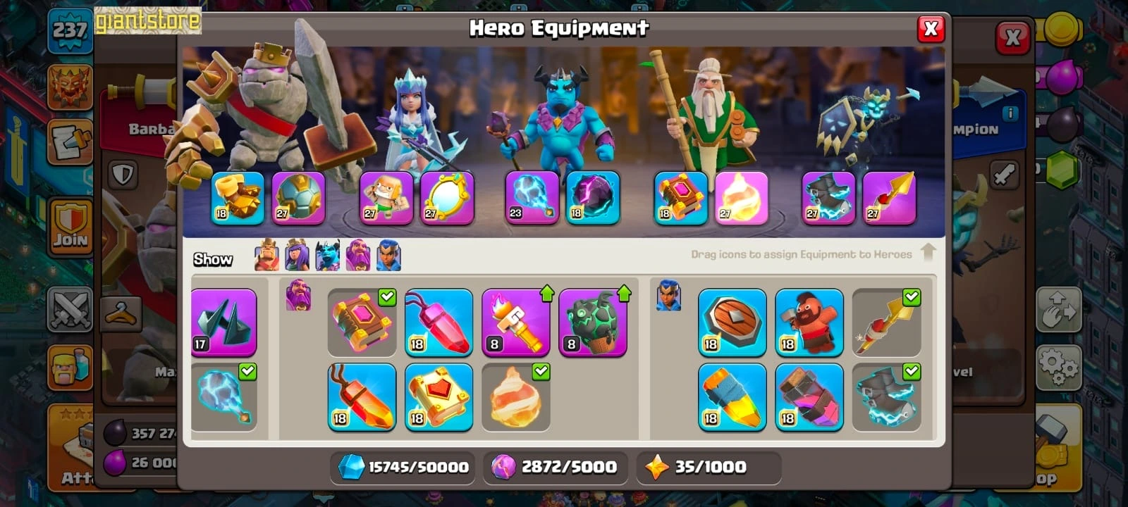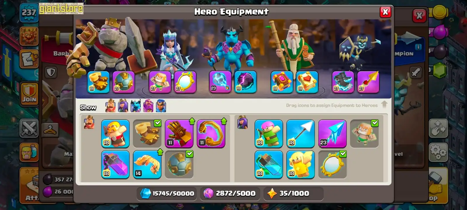 RAREâ ïļ6 max epic equipmentðĨTH 17 almost maxðĨmax heroesðĨmax petsâĄïļall supercharge defenseâïļ900 cwl medalâ ïļfull equipment 33/33