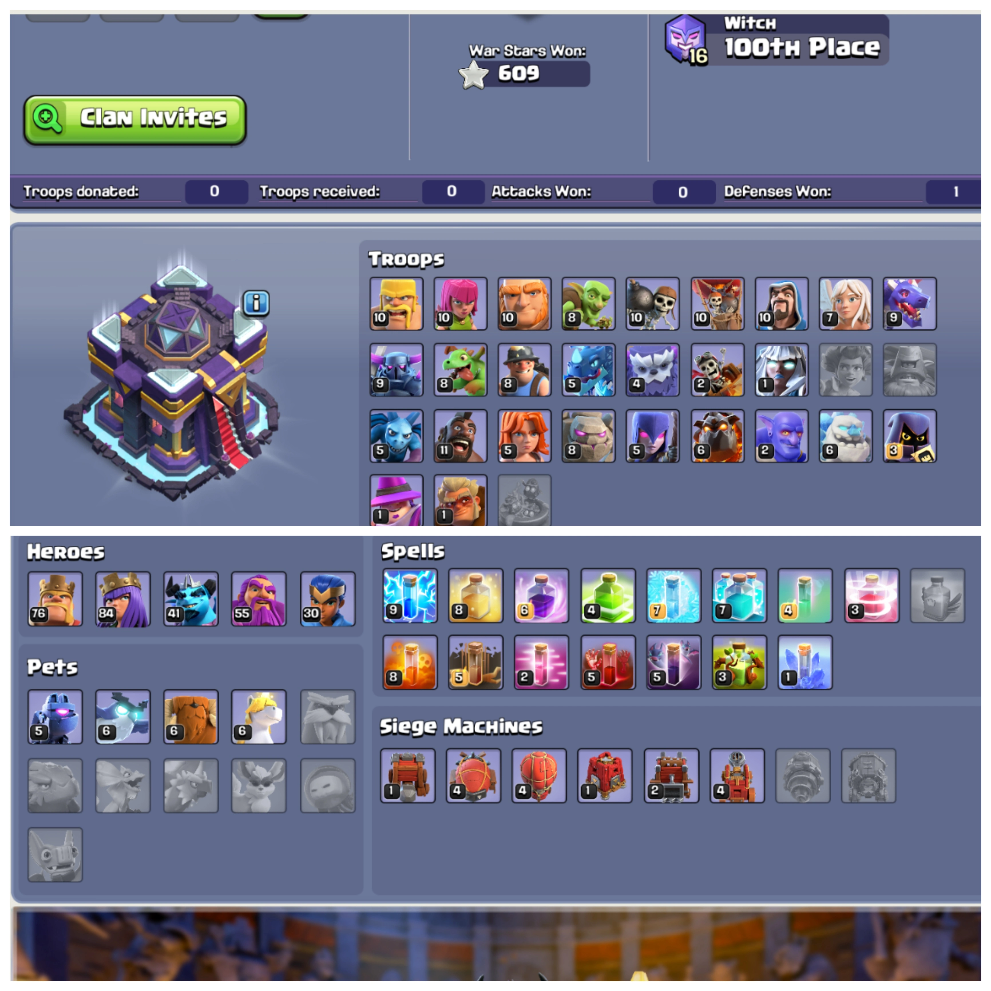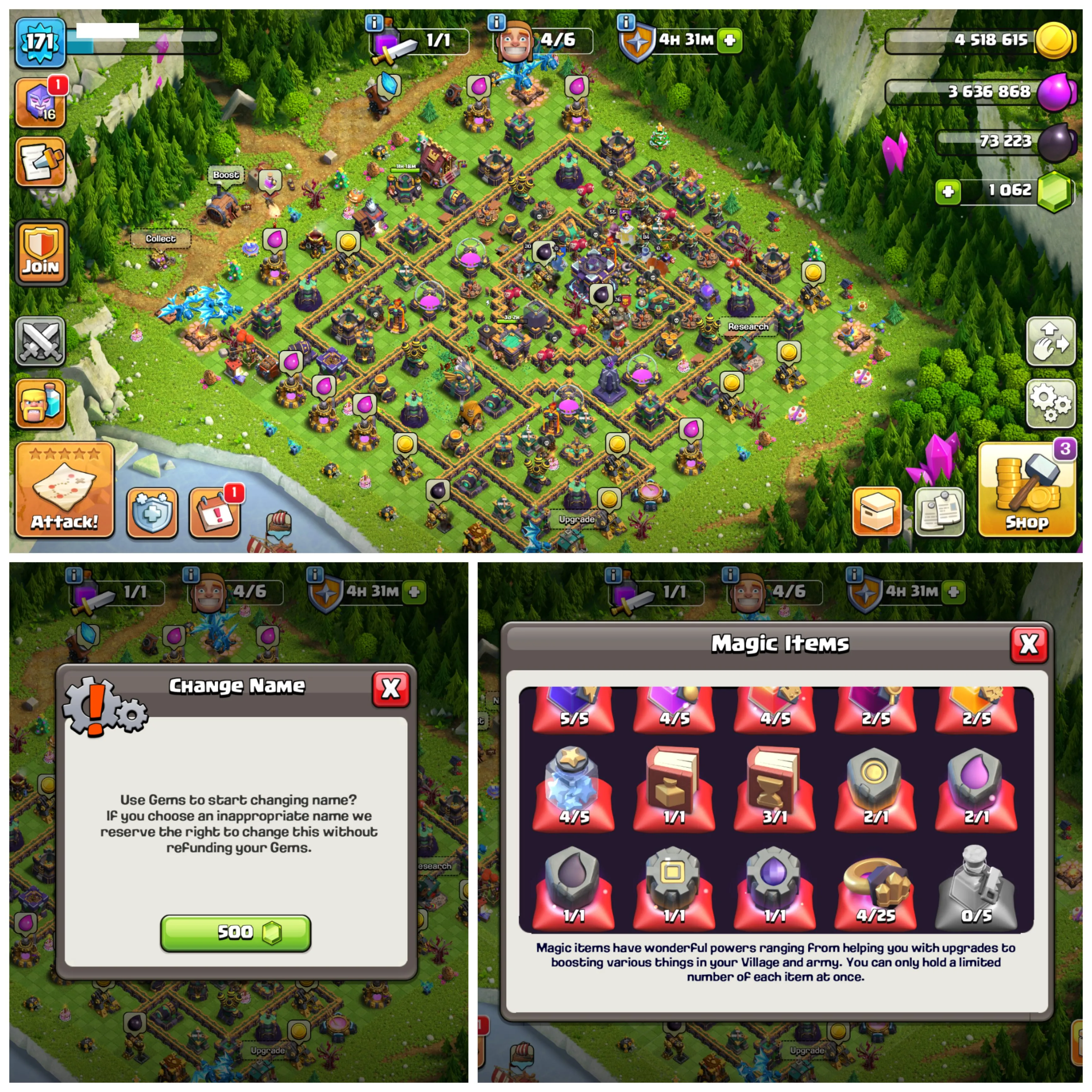 💫 TH 15 Golden Banger 🧩 8 Epic Equipments ⚒️ Heroes: BK76 AQ84 MP41 GW55 RC30 ✨ Name Changeable 🎁 Stacked Magic Items 🎭 5 Skins ⚡ Instant Delivery