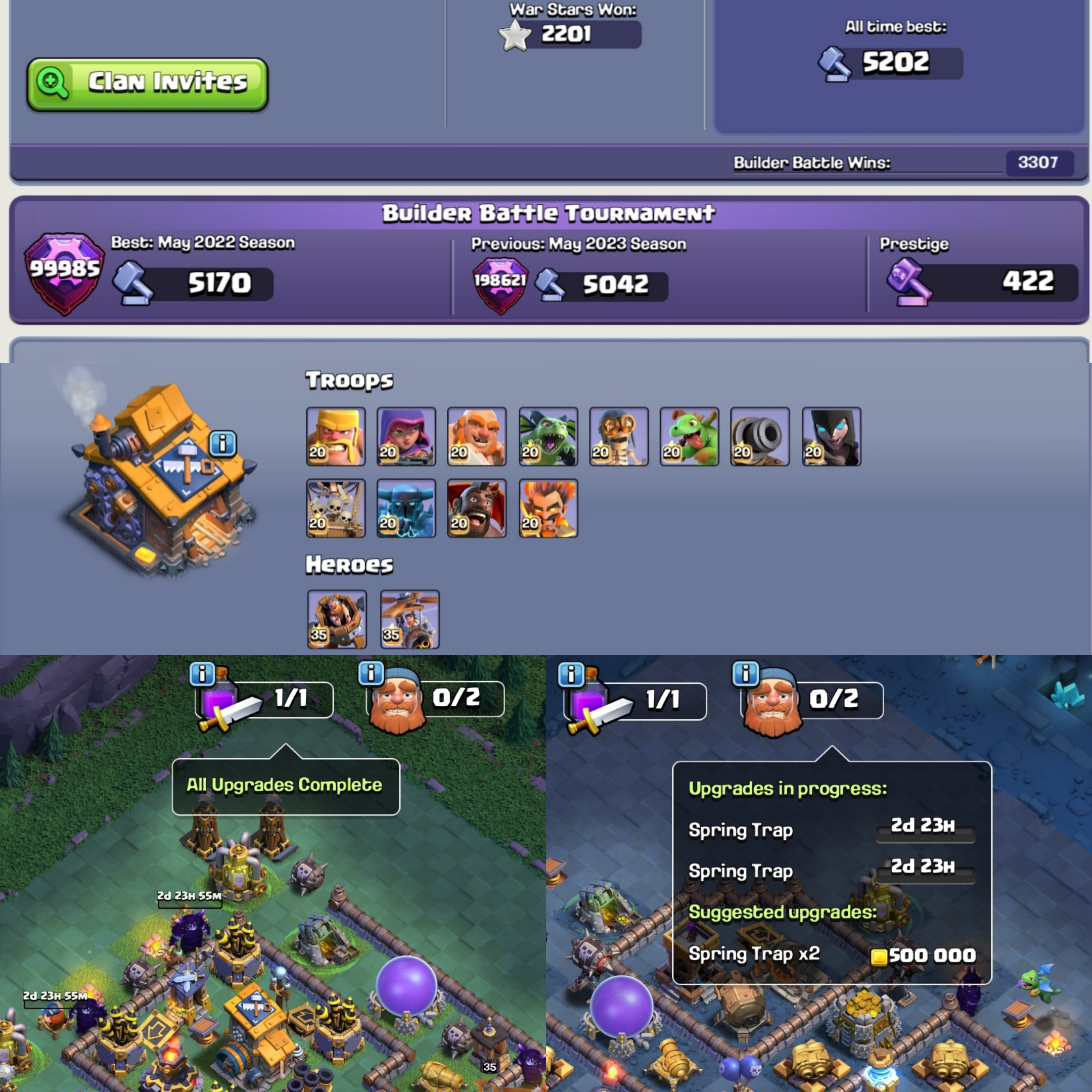 ⭐ TH 17 ⭐ 99% MAX ⭐ 11500 GEMS ⭐ CRAFT & SPRING TRAP LEFT ⭐ 12 EPIC EQUIPMENT ⭐ BUILDER BASE MAX ⭐ 1460 CWL MEDALS ⭐ MAGIC ITEMS