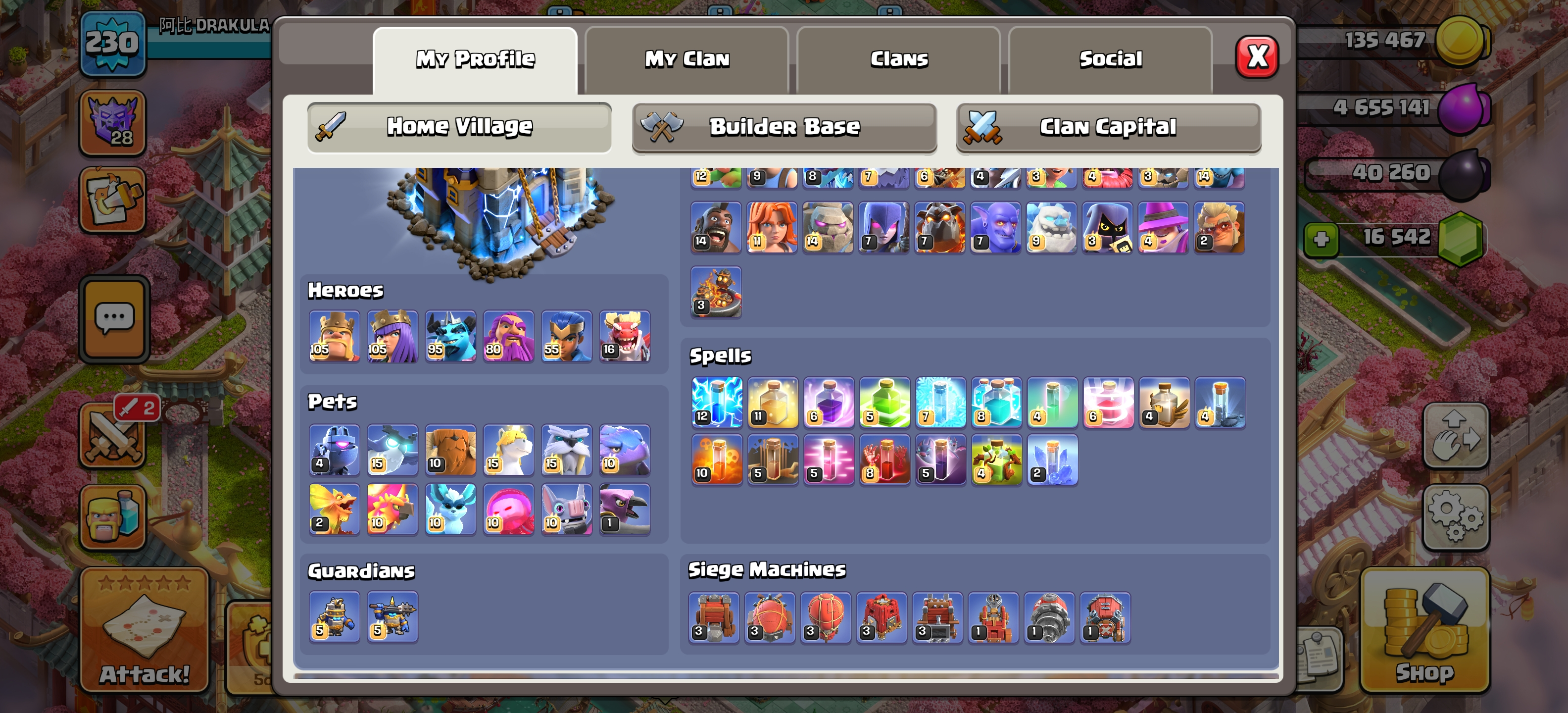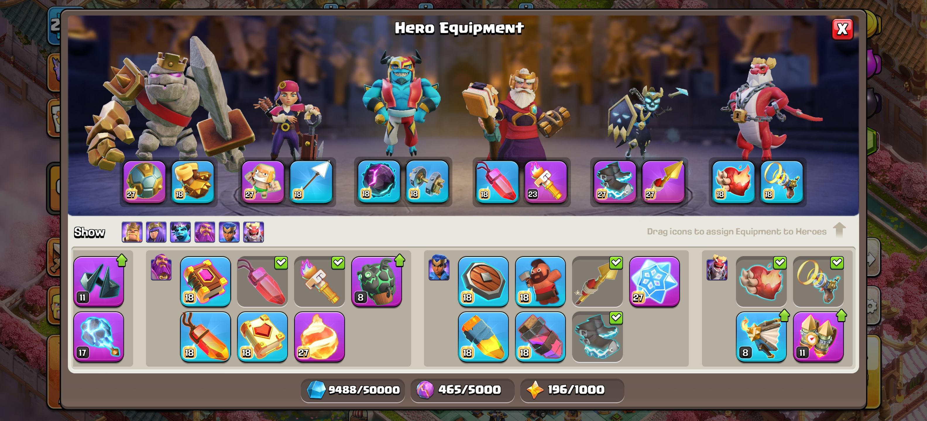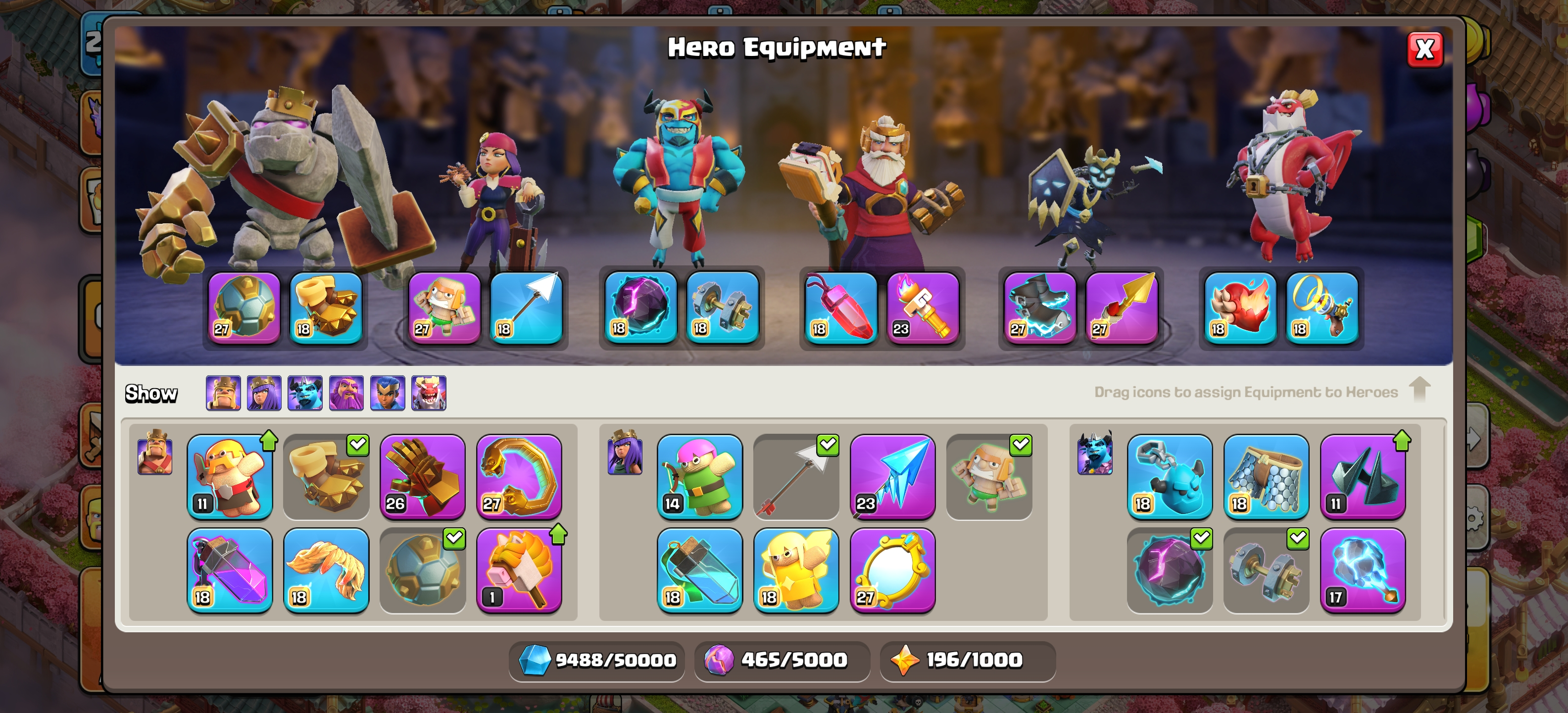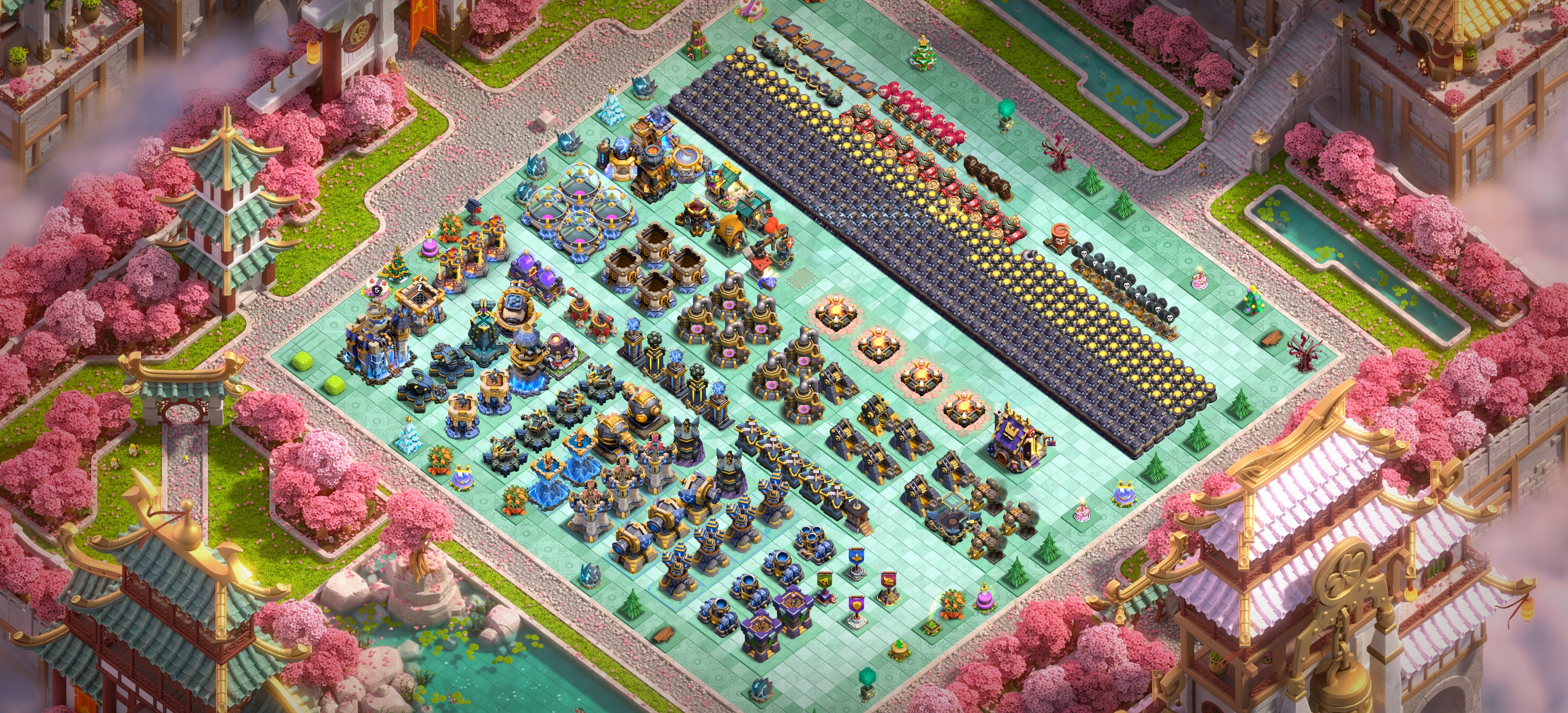 ⭕ TH 18 NEAR MAX ⭕ 16600+ GEMS ⭕ 16/16 EPIC EQUIPMENT ⭕ MAX BUILDER APPRENTICE ⭕ NEAR MAX LAB AND DEFENCE ⭕ YEAR OF THE FIRE HORSE SCENERY ⭕ INSTANT DELIVERY ⭕ J05