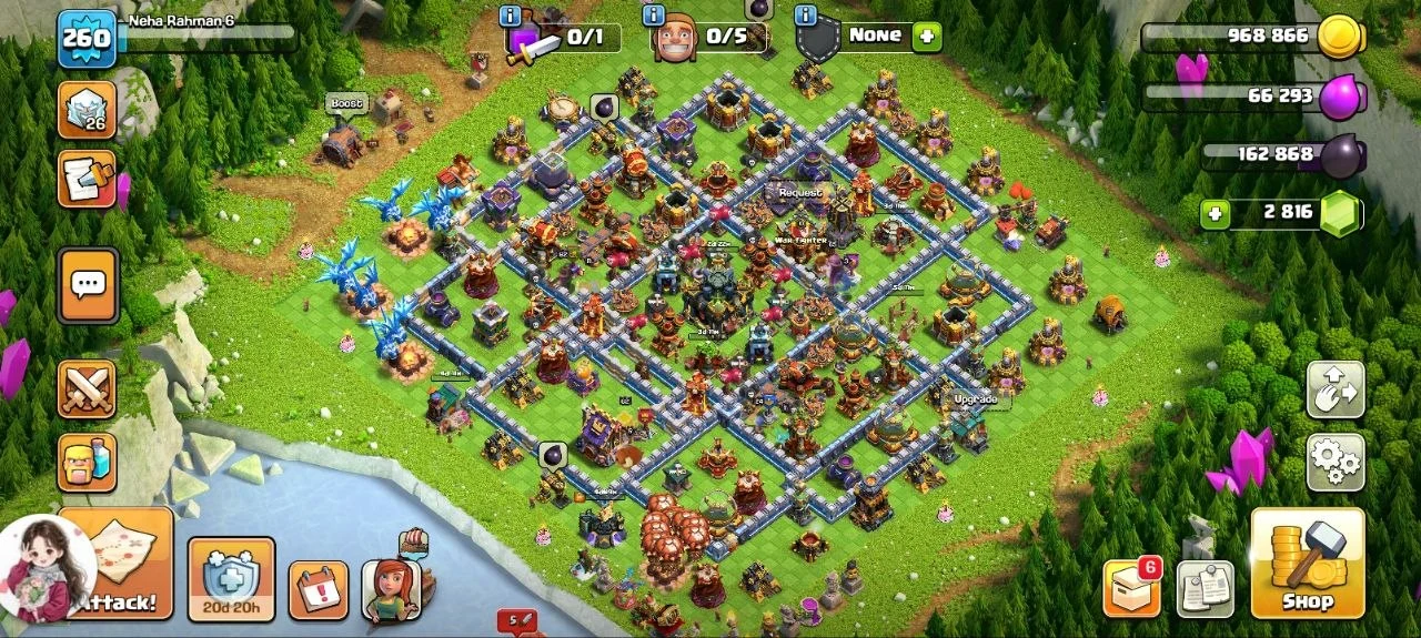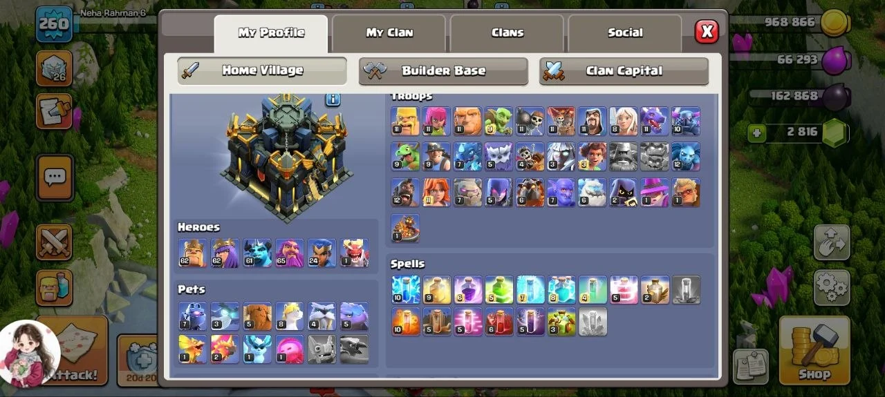 TH17 260 EXP>RED DEFENCE>HIGH LEVEL TROOPS>60+ HERO>GOOD EPIC>1X EPIC AMX>416 CWL MEDEL>STACK MAGIC ITEMS>BUYER EMAIL POSSIBLE>K