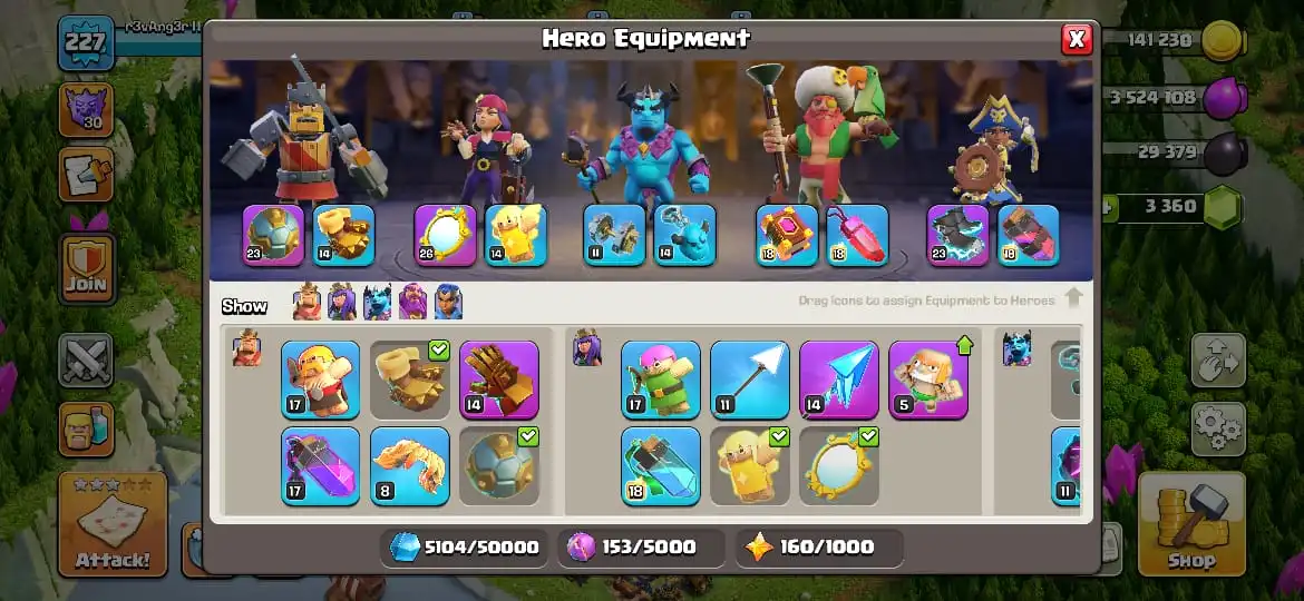 🔥 TH17 [Nearest Maxed Premium Base] || ⚔️ Heroes-77/82/64/59/31 || 🔥 XP Level 227, War Stars 2100+, Name Change Available, Legendary Hero Skins || 🔥 Nearest Maxed Walls, Maxed Builder Base, Good Hero Equiqments || Android/IOS Ready 🔥 ||