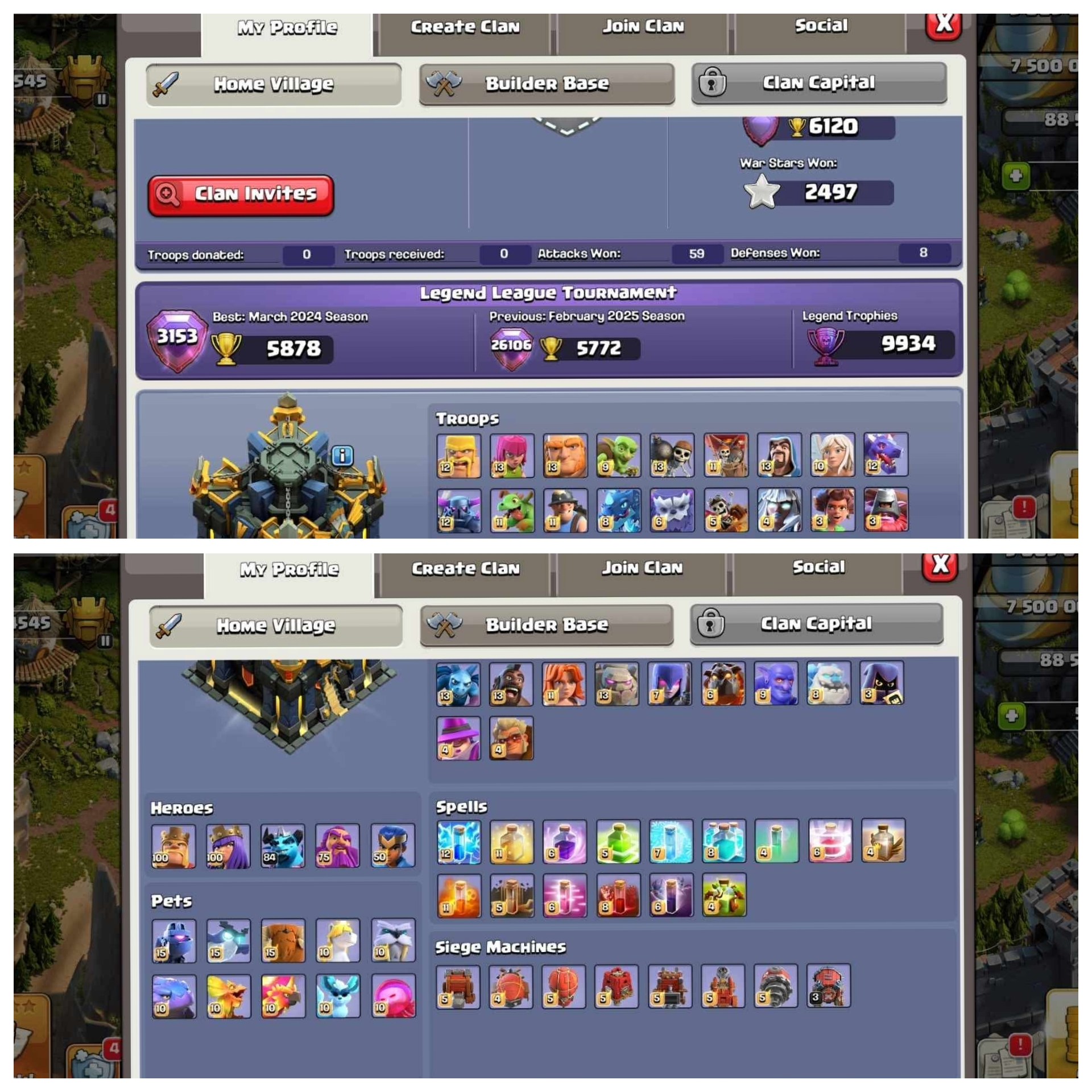 World Super Rare 8 Epic Max Equipment-Th 17 Full Max-Hero 100-100-84-75-50-Profile Max-Defense Max-Many Rare Skin Scenery-Full Access