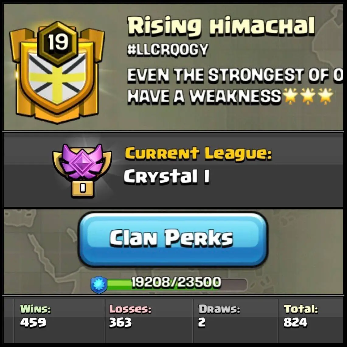 LVL19⚡️RISING HIMACHAL⚡️CRYSTAL 1⚡️+VE WAR LOG⚡️INSTANT DELIVERY