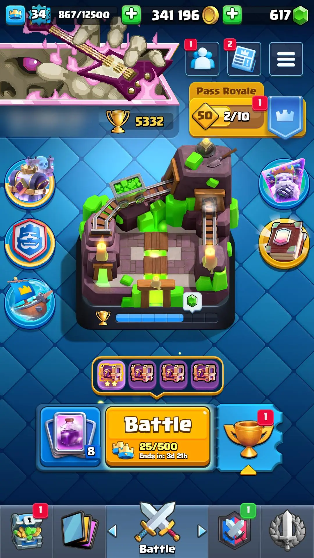 0 CHAMPIONS + KT 12 + 34 LVL + 5332 Trophy + 1 EVO + 0 ELITE + 0 MAX CARDS + 13 Legendary + 34 EPIC + FULL ACCESS+IOS/ANDROID+SCREENSHOTS INSIDE