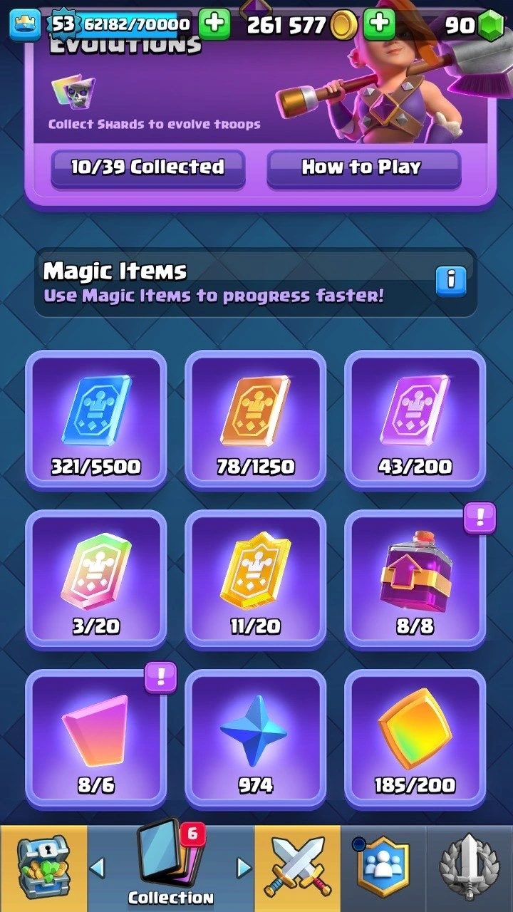 10 560 Trophies | XP level 53 | LOADED magic items | 10 Evolutions | 56+ emotes {CHEAPEST🔥}