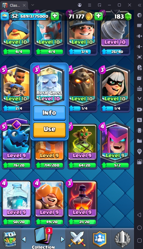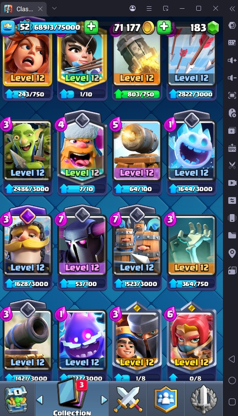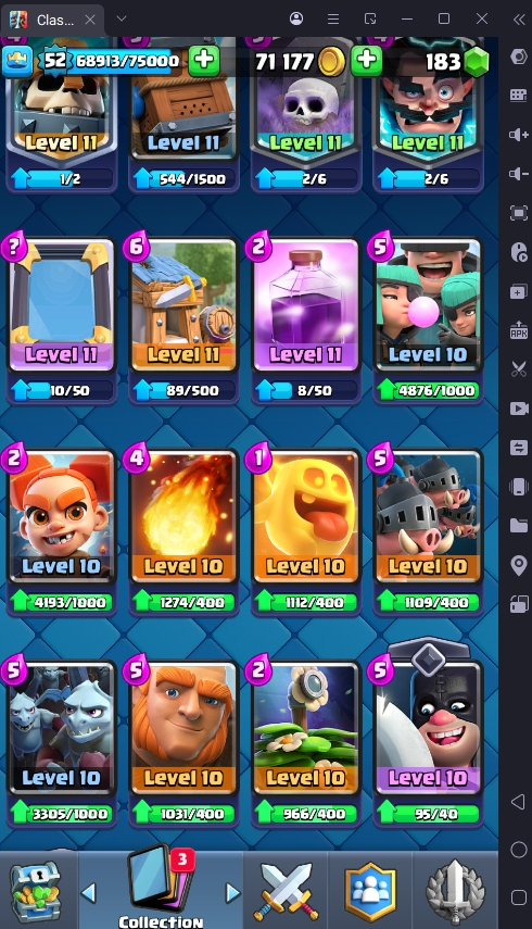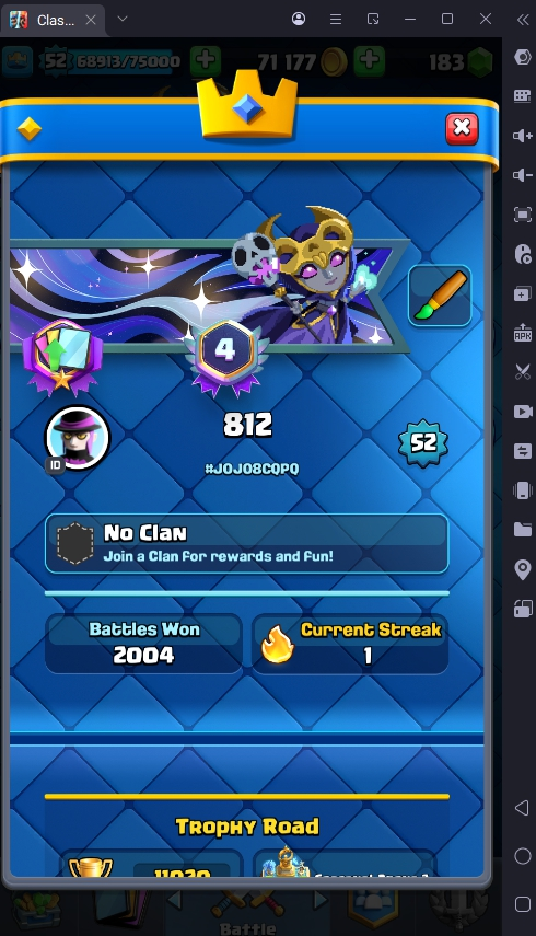 11020 TROPHY 🏆 52 LVL 💯 KT 14 👑 119 CARDS ♦️ 9 MAX CARDS 👑 7 ELITE CARDS 🔮 11 EVO 💯 EMOTE 58 🎭 #J0J08CQPQ ⸱ TAG ACCOUNT ♥️