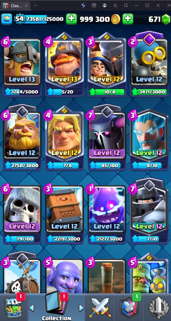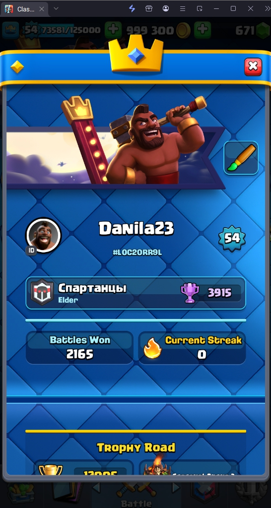 12005 TROPHY 🏆 54 LVL 💯 KT 15 👑 121 CARDS ♦️ 13 MAX CARDS 👑 9 ELITE CARDS 🔮 11 EVO 💯 EMOTE 69 🎭 #L0C20RR9L ⸱ TAG ACCOUNT ♥️