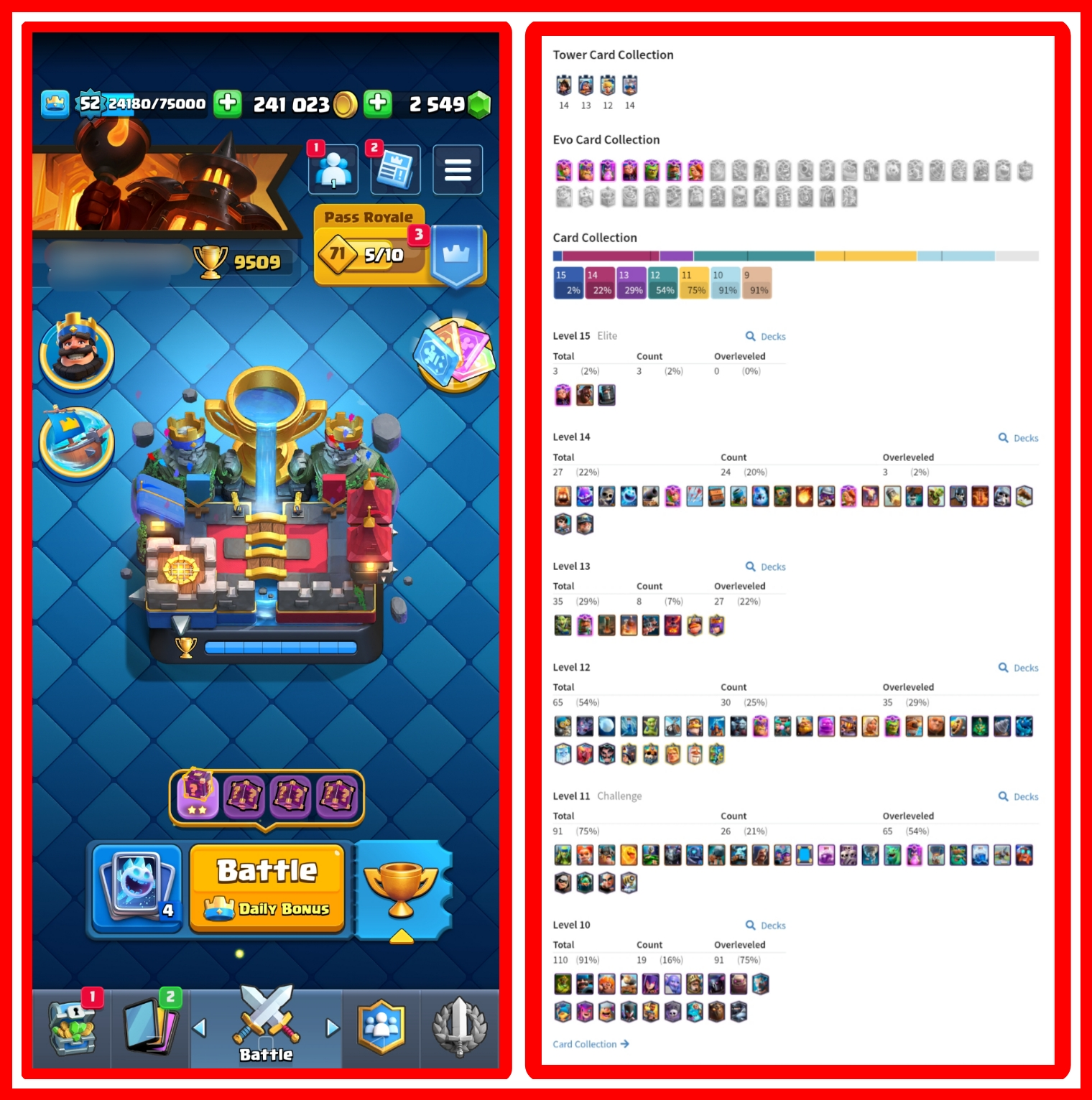 27 MAX CARDS💥LEVEL 52 🚀9500 TROPHIES🏆ARENA LEVEL 23💗KT LEVEL 15☠️7 EVOLUTION CARDS🤩3 ELITE CARDS😍NAME CHANGE 500 GEMS 💎CHEAP PRICE 💸 INSTANT DELIVERY☑️ANDROID & IOS ☑️#FZ