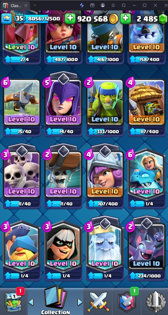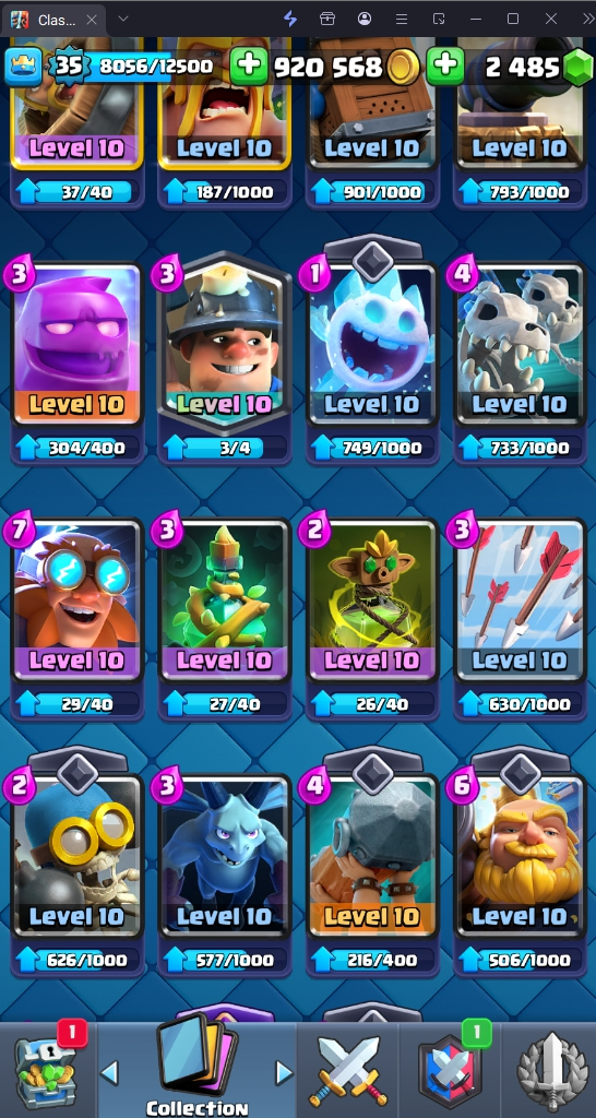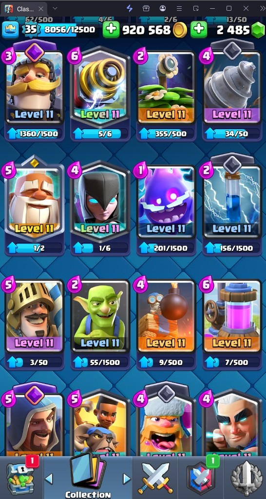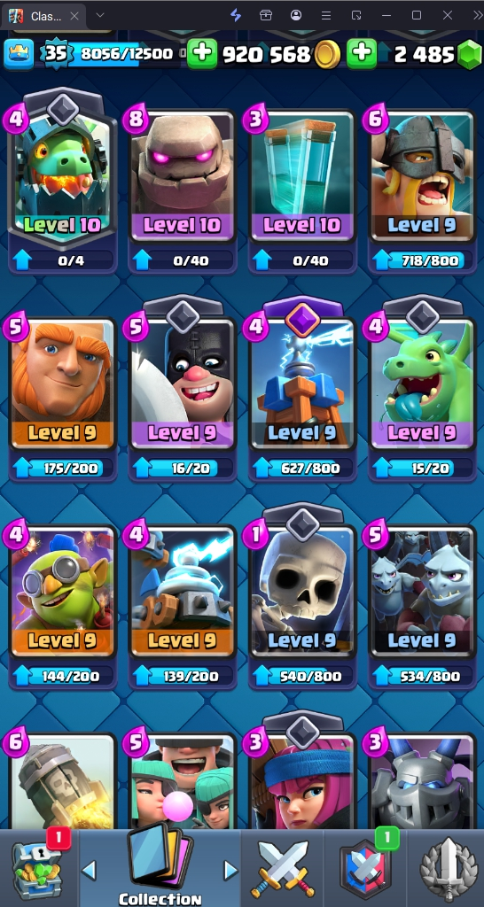 6662 TROPHIES 🏆 35 LVL 💯 KT 12 👑 116 CARDS ♦️ 0 MAX CARDS 👑 0 ELITE CARDS 🔮 5 EVO 💎 EMOTE 20 🎭 #UUY8YRPPV ⸱ TAG ACCOUNT ⚙️ LEGENDARY ARENA • 9000 TROPHIES 💎