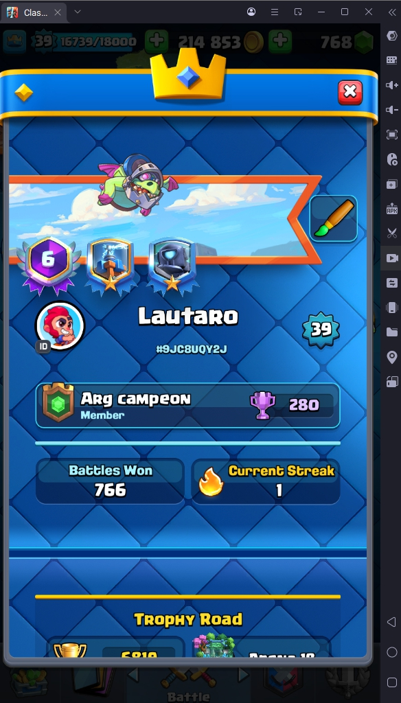 6819 TROPHY 🏆 39 LVL 💯 KT 13 👑 114 CARDS ♦️ EMOTE 18 🎭 #9JC8UQY2J ⸱ TAG ACCOUNT ♥️