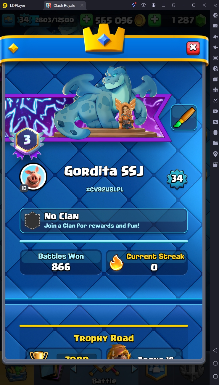 7000 TROPHY 🏆 34 LVL 💯 KT 12 👑 112 CARDS ♦️ 1 MAX CARDS 👑 0 ELITE CARDS 🔮 6 EVO 💯 EMOTE 23 🎭 #CV92V8LPL ⸱ TAG ACCOUNT ♥️