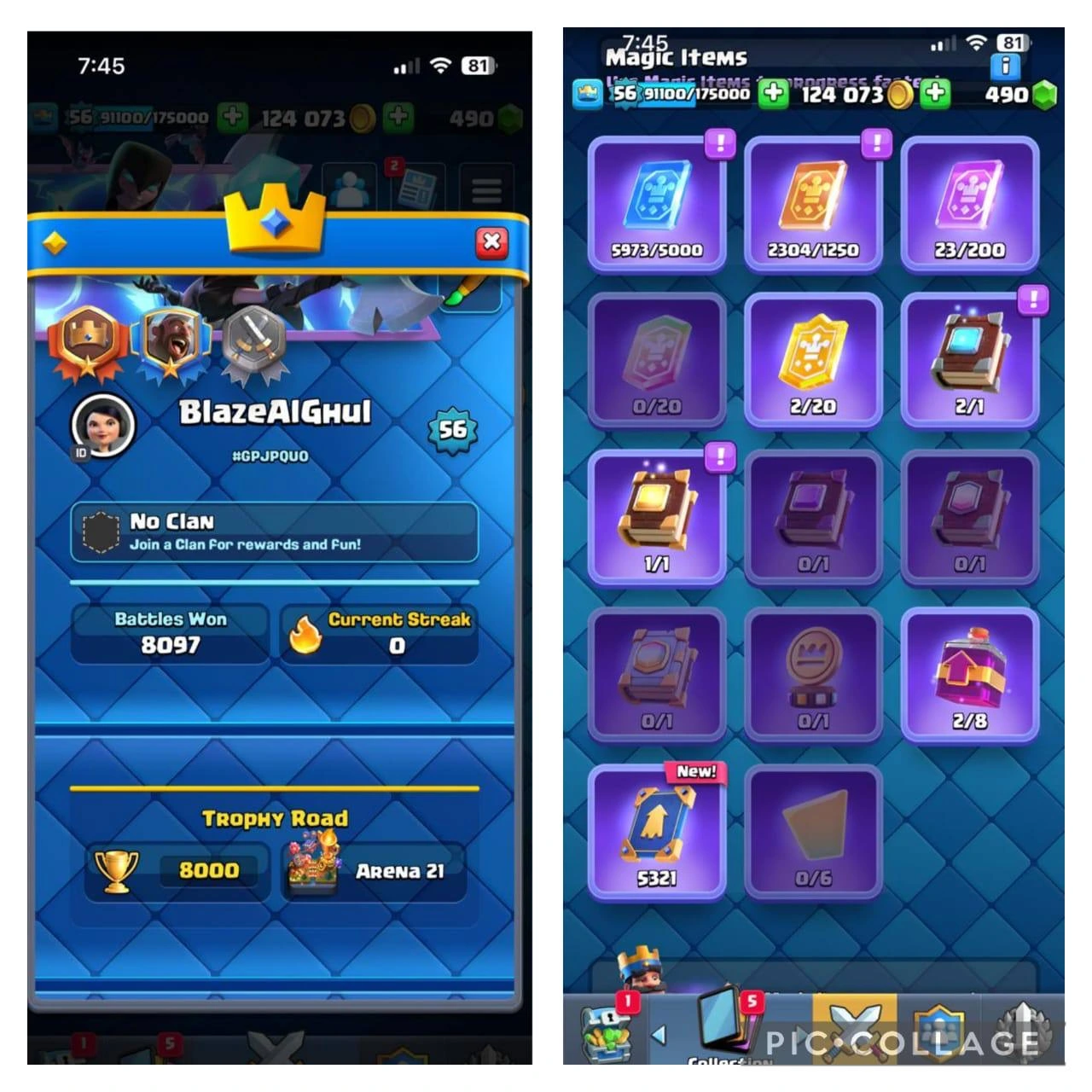 8000 Trophies | XP Lvl 56❗️| 47 MAXED CARDS❗️| 7 ELITE LEVEL CARD ❤️🔥| 2 EVOLUTIONS📈 | 61 emotes | 100% safe account | instant delivery