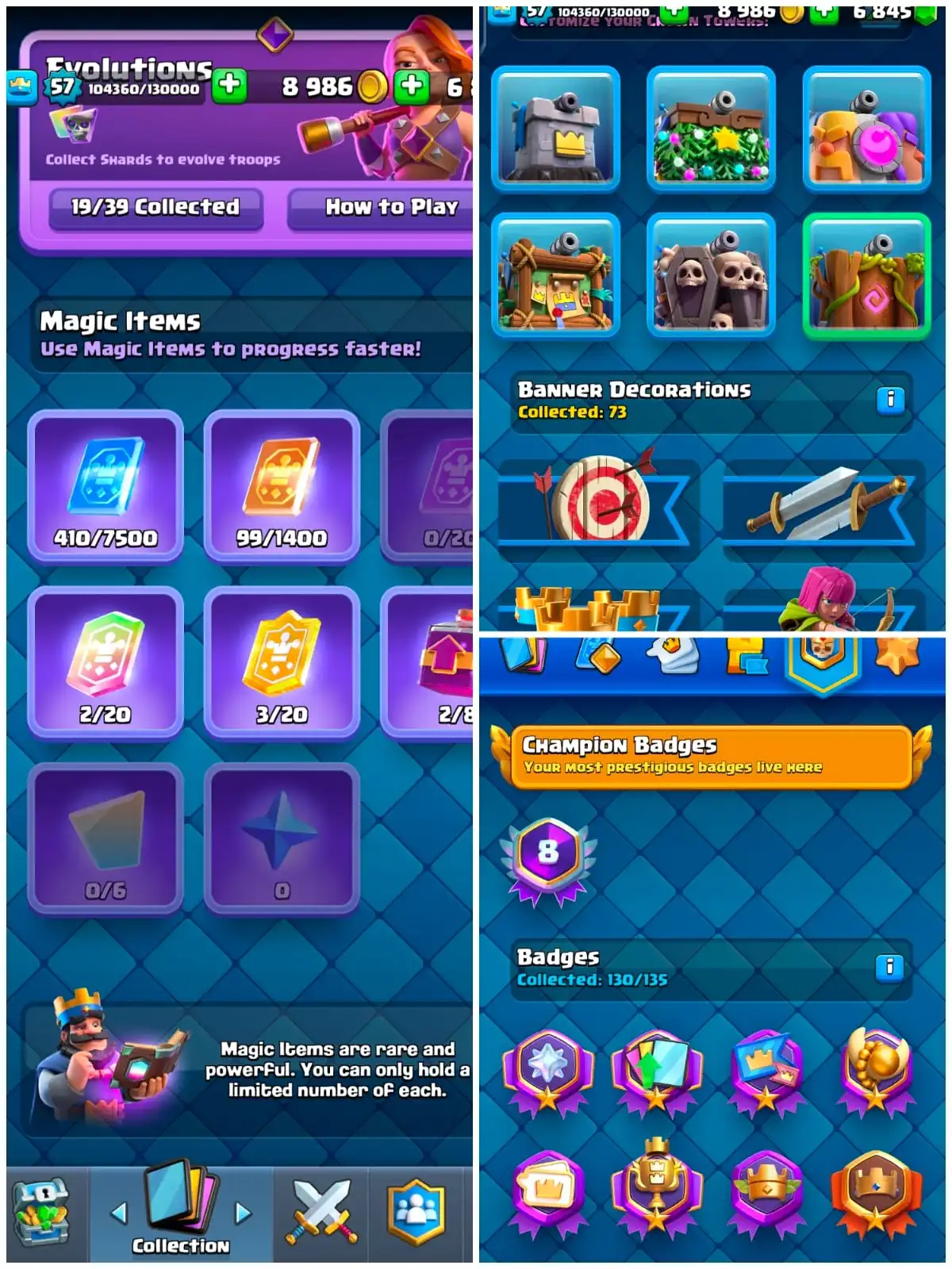 9300 trophies •19 Evolutions | 9 Elites | 59 Max | KT 15 | 5 KT Skins | 6.8k Gems | 86 Emotes | Ruler Skins | 8 Years Old