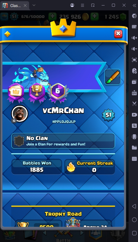 9500 TROPHY 🏆 51 LVL 💯 KT 14 👑 120 CARDS ♦️ 15 MAX CARDS 👑 3 ELITE CARDS 🔮 12 EVO 💯 EMOTE 64 🎭 #PPL0JQJLP ⸱ TAG ACCOUNT ♥️
