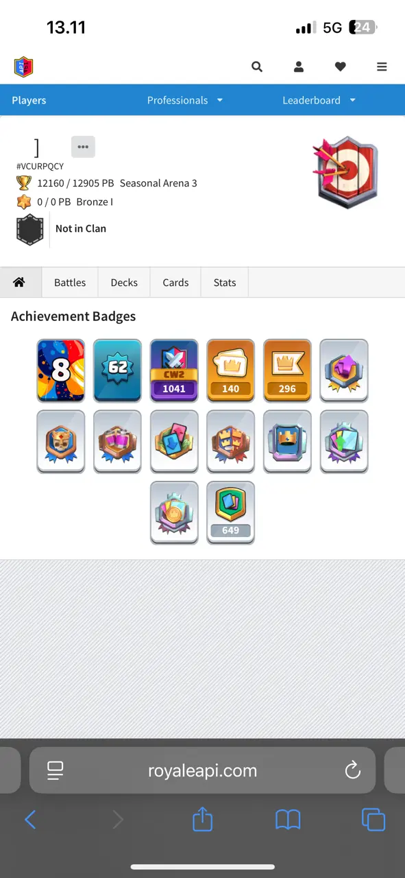 🔥 Awesome Rarest 🔥 CR Lv.62 🔥 8 Years Played 🔥 Change Name ON 🔥 Seasonal Arena 3 🔥 12160 Trophies 🔥 KT 15 🔥 22 Evo Cards 🔥 96 Max Cards & 31 Elites 🔥 140 Emotes 🔥 13 Tower Skins 🔥 [F2790] 🔥