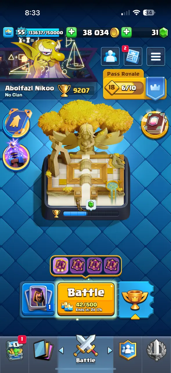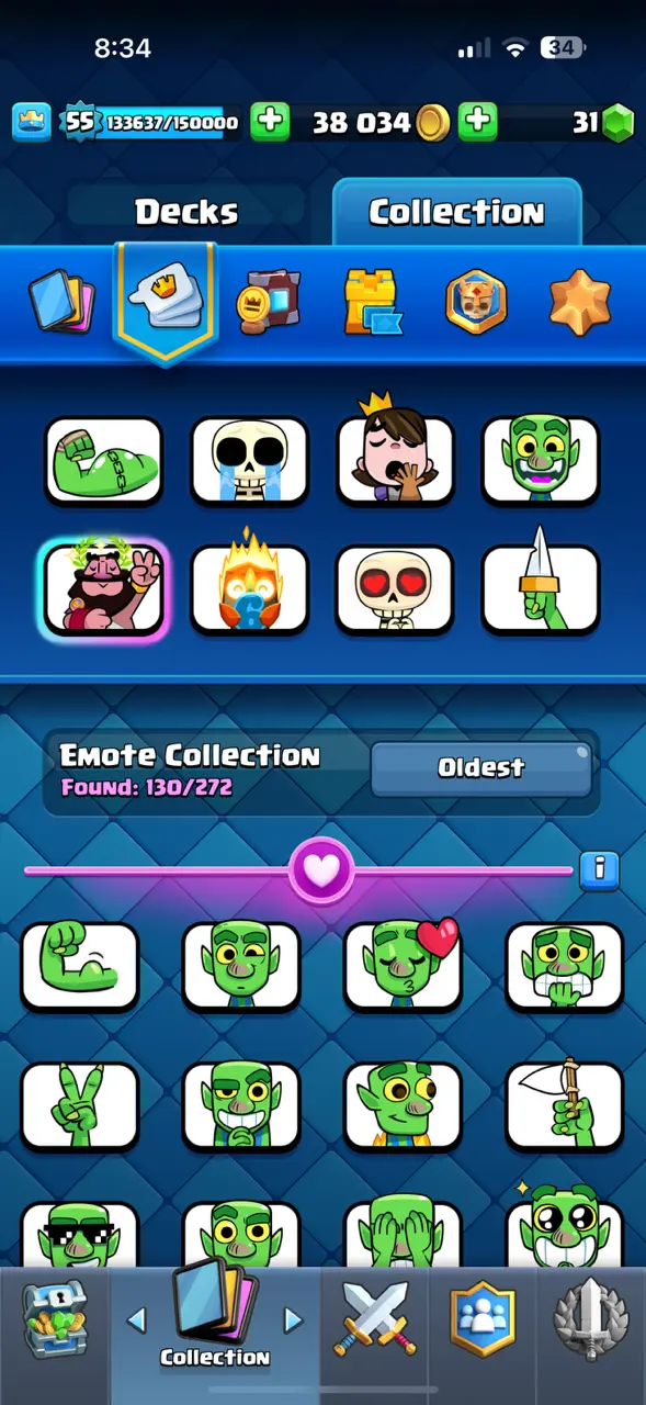 ❄️ [CHEAPEST]✨ARENA 23♦️ [RARE ] EMPEROR KING EMOTE 🥶 9207 TROPHYS 🔥 9 EVO CARDS 💥8 ELITE CARDS 💥 130 EMOTES 🌟XP (55)✨KT (15) ✨38034 GOLD ☘️8 KT SKINS 💥INSTANT DELIVERY 🚚