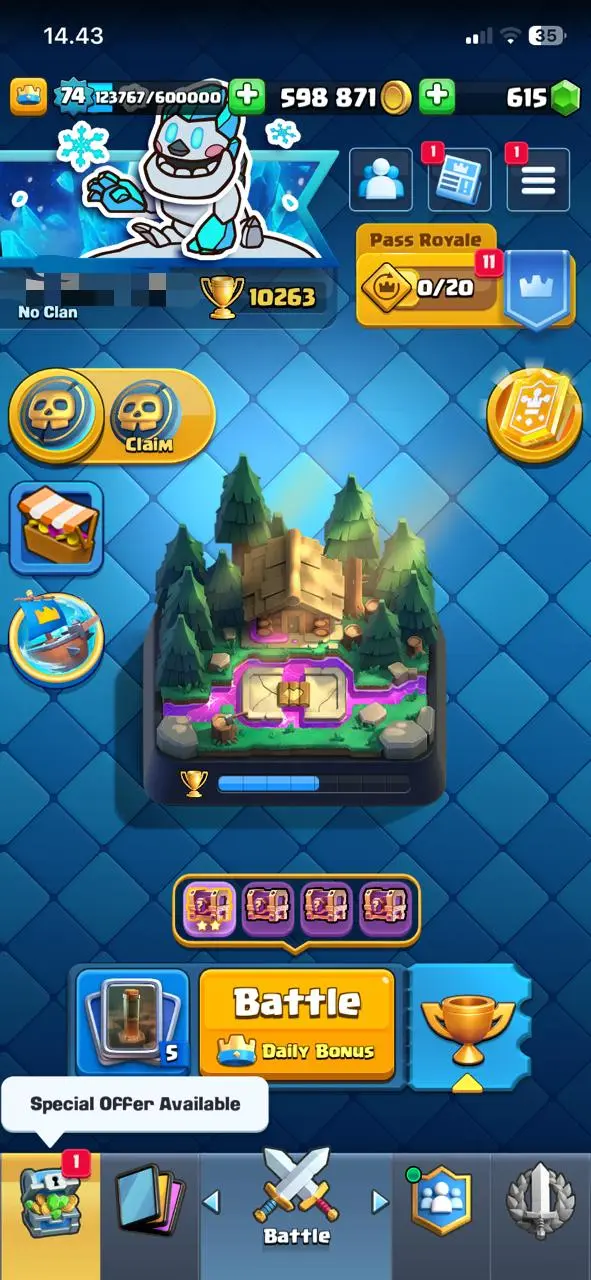 cheapest🔥cr lv 74🔥evo 31🔥arena 25🔥trophy 10263🔥emote 164🔥skins tower 12🔥full access account🔥