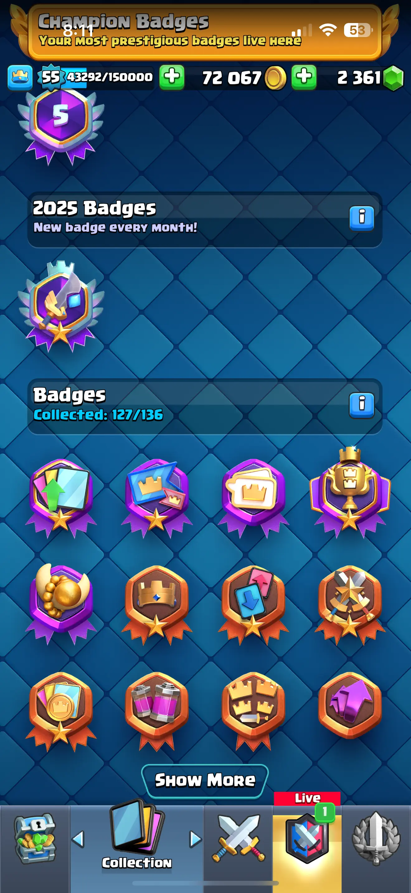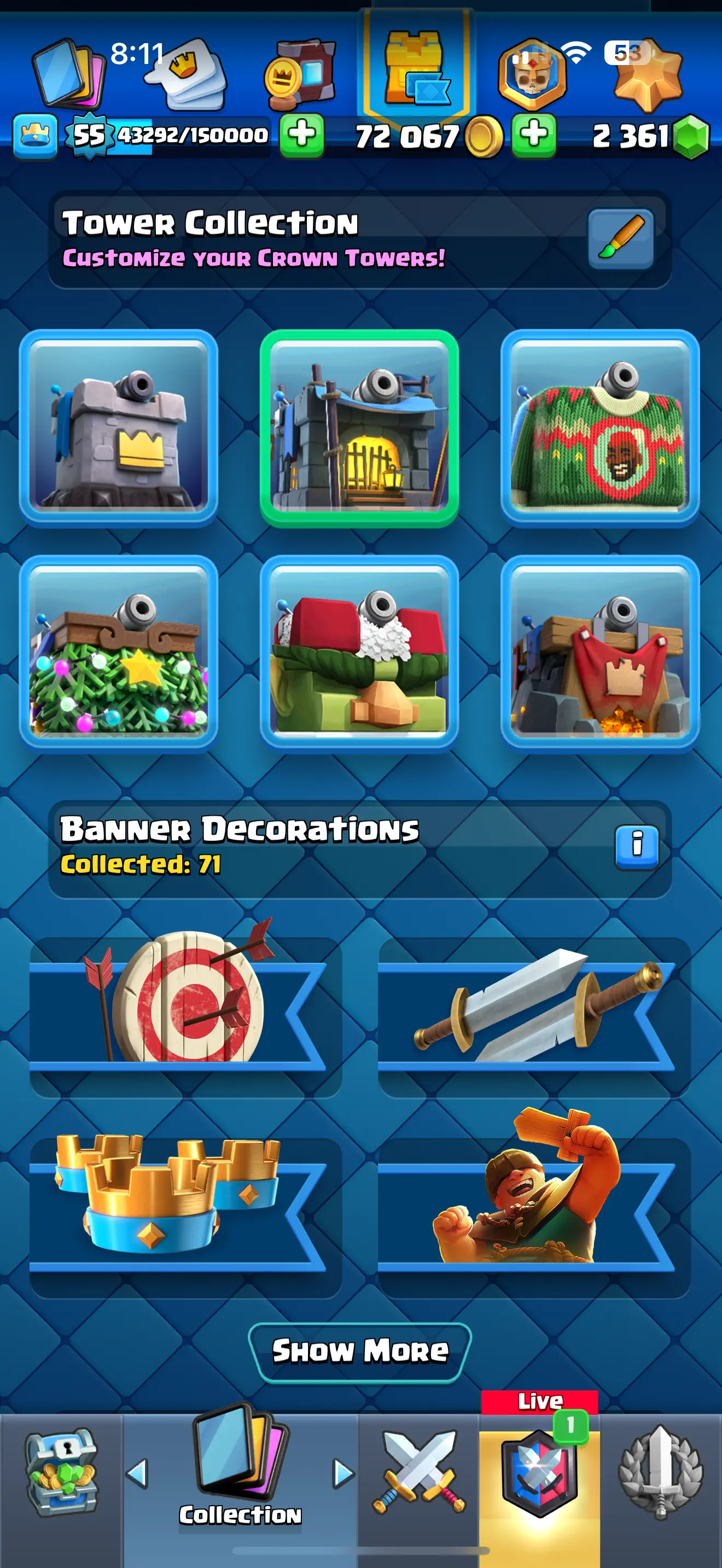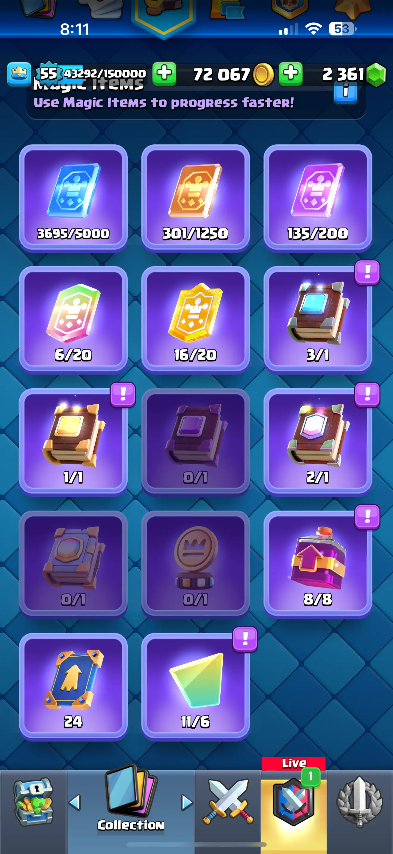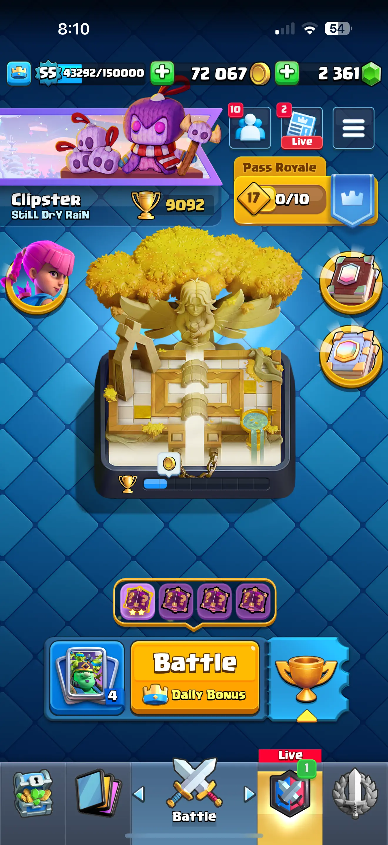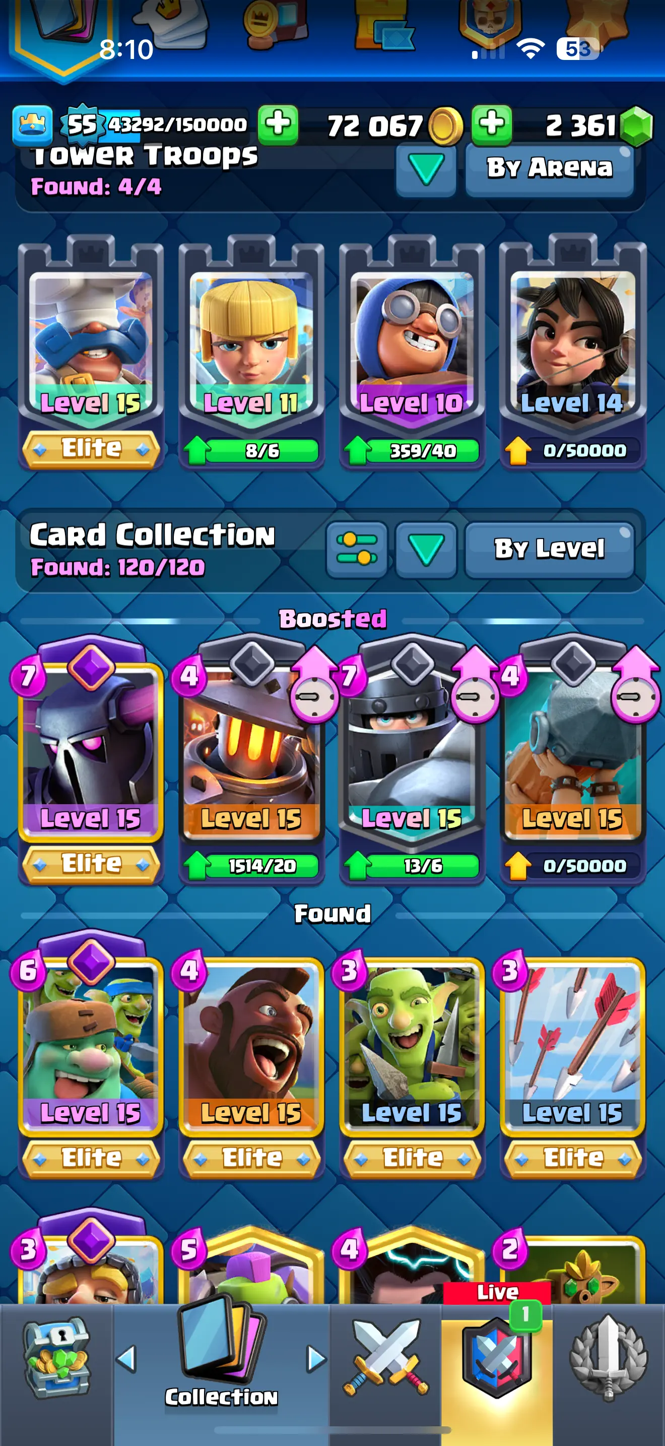 ❄️ [CHEAPST]✨ARENA 23 ♦️[RARE] EMPEROR KING EMOTE 😍9092 TROPHYS 🔥 9 EVO CARDS 💥10 ELITE CARDS 🔥 30 MAX CARDS 🔥 67 EMOTES 🌟XP (55)✨KT (15) ✨72067 GOLD 🥇 2361 GEMS 💎 ☘️6 KT SKINS ⭐ INSTANT DELIVERY 🚚